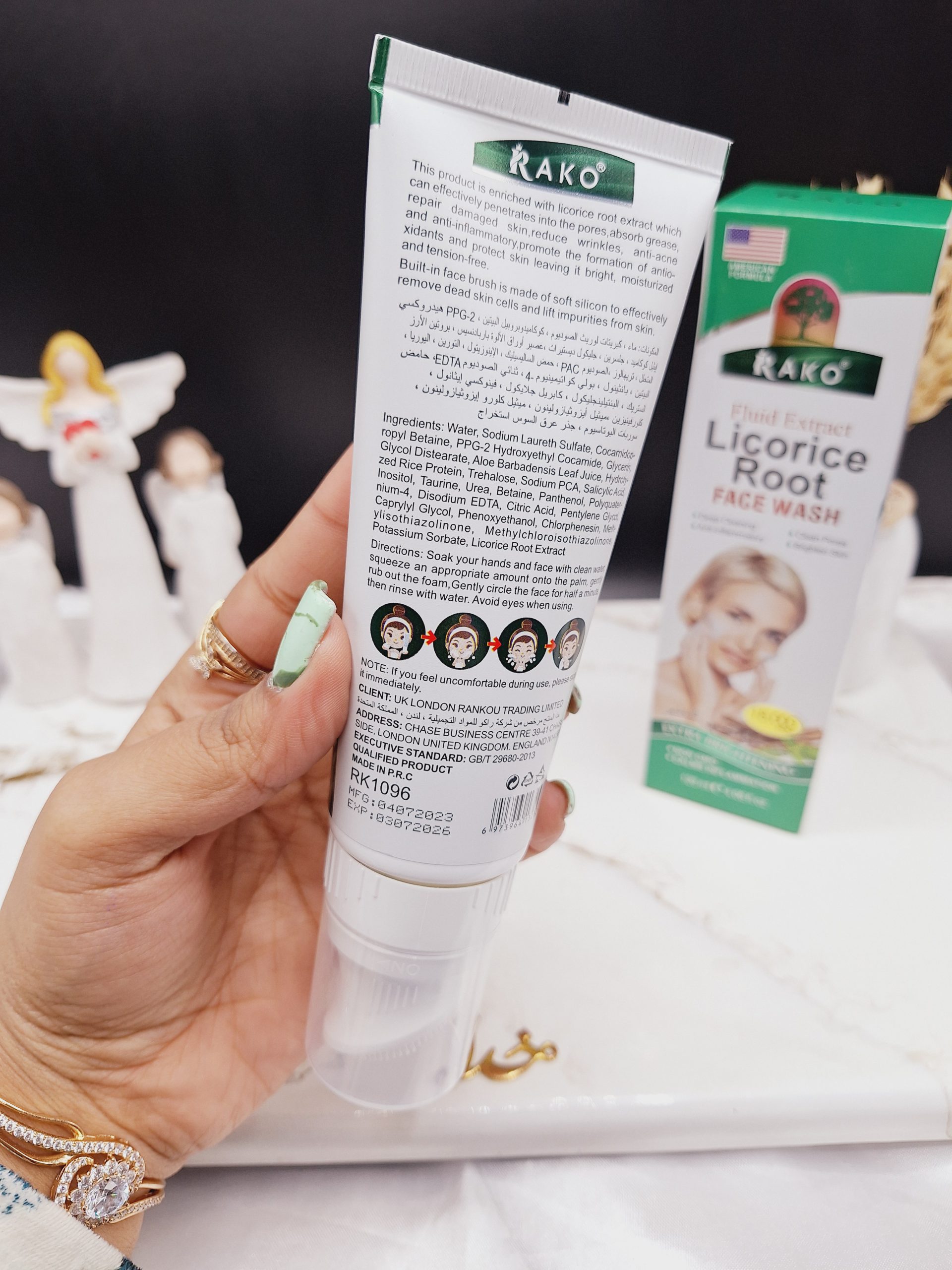فوم شستشوی براش دار با عصاره شیرین بیان برند راکو RAKO کد RK1096، یک محصول روشن کننده و پاک کننده عمقی پوست است که برای خانمها و آقایان مناسب است. این محصول علاوه بر پاک کنندگی اریاف پوست و آرایش، دارای خاصیت روشن کننده و ضد جوش است.