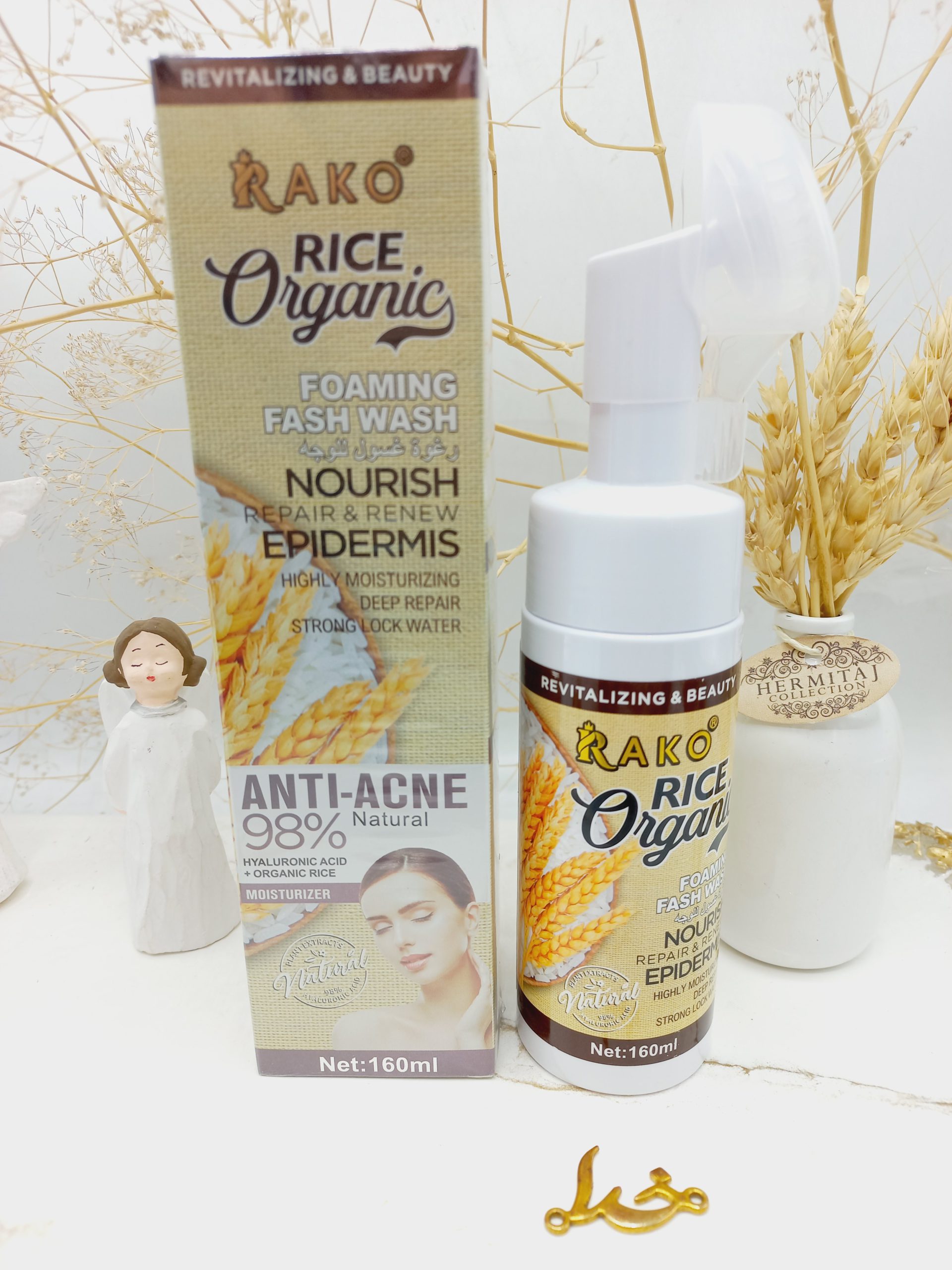 فوم شستشو عمیق صورت براش دار گندم 98 درصد راکو RAKO کد RK1066 یک شستشوی صورت شفاف کننده و پاک کننده عمیق پوست غنی شده با گندم است.