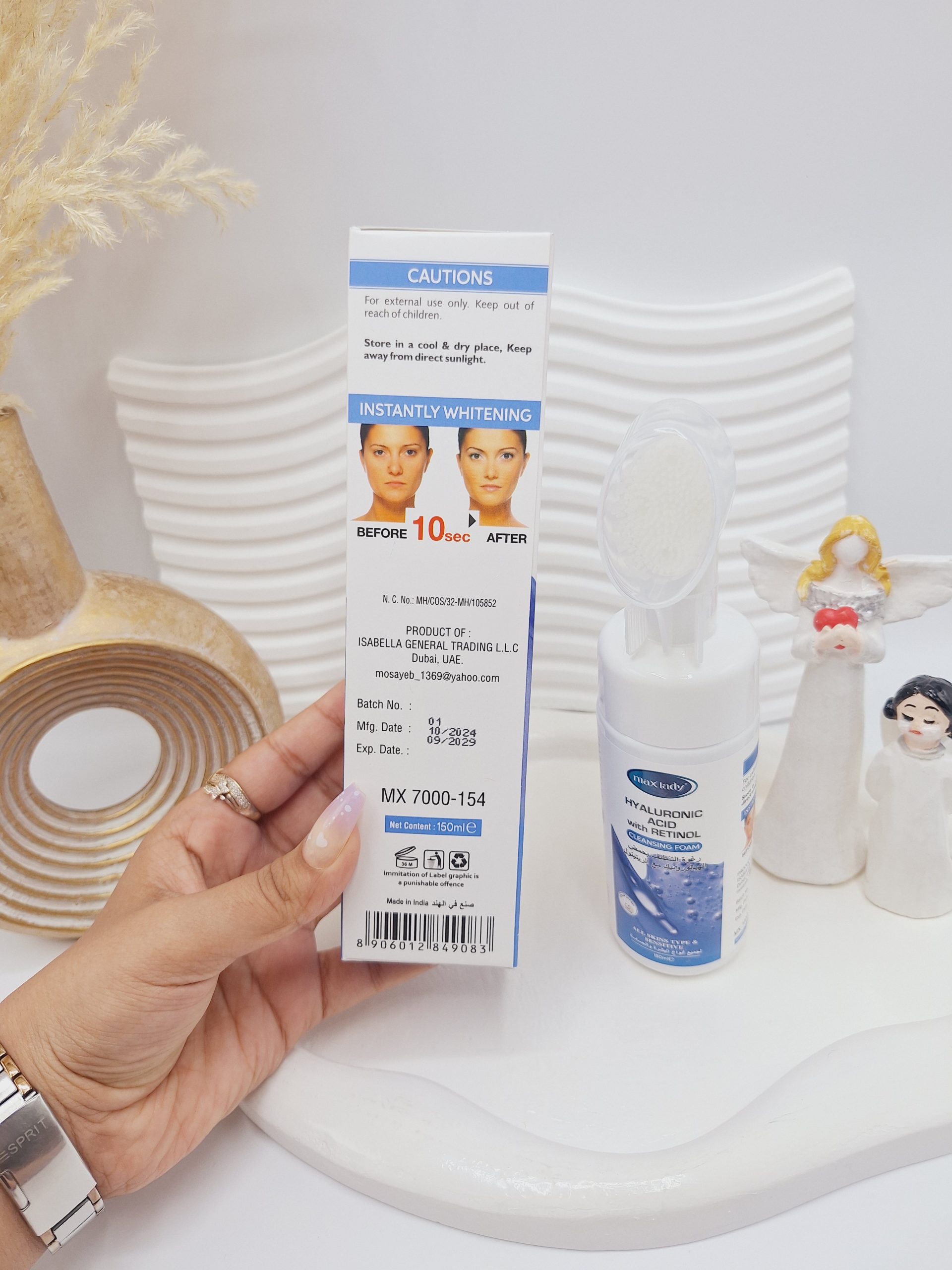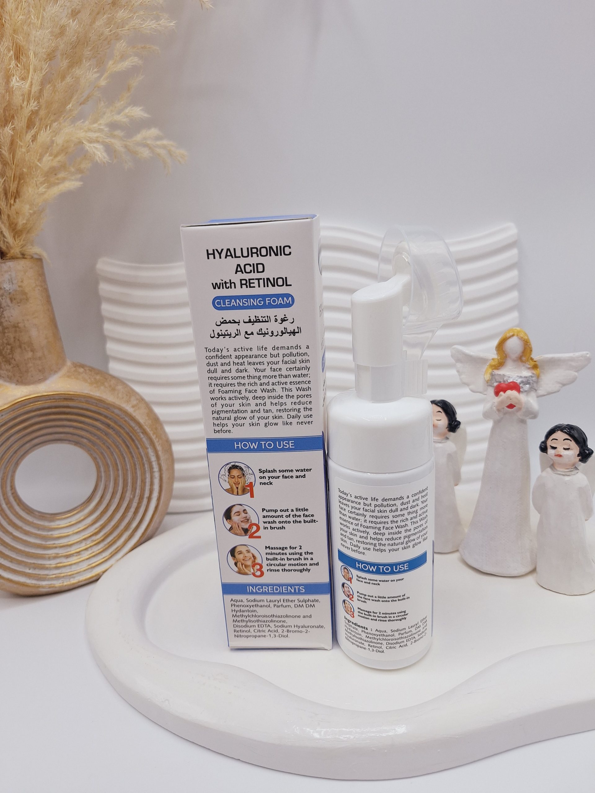 این شوینده حاوی هیالورونیک اسید می‌باشد که با فرمولاسیون ویژه ای که دارد خاصیت پاک کنندگی فوق العاده خوبی دارد که یک انتخاب عالی برای شست و شوی روزانه ی پوست است این فوم دارای براش سرخود می‌باشد که پوست را به طور کامل پاکسازی کرده و ماساژ می‌دهد و به هیچ عنوان باعث خشکی پوست نمی‌شود این محصول با تنظیم PH پوست و برقراری تعادل در کنترل ترشح چربی پوست مانع از چربی بیش از اندازه پوست و بوجود آمدن جوش و آکنه میگردد ‌. فوم براش دار هیالورونیک اسید یحاوی هیالورونیک اسید می‌باشد که با فرمولاسیون ویژه ای که دارد خاصیت پاک کنندگی فوق العاده خوبی دارد که یک انتخاب عالی برای شست و شوی روزانه ی پوست است .با بالا رفتن سن، پوست استحکام، فربهی و درخشش خود را به دلیل تجزیه کلاژن و فیبرهای الاستیک و کاهش ماده مرطوب کننده خود بدن یعنی هیالورونیک اسید از دست می‌دهد. در واقع هیالورونیک اسید ترکیبی طبیعی است که در پوست یافت می‌شود و باعث حفظ رطوبت، انعطاف پذیری، کمک به بافت برای ترمیم پوست و حفظ عوامل پوست مانند کلاژن و الاستین، کمک به ایجاد مانعی حفاظتی در برابر میکرو اورگانیسم‌ها دارد درنتیجه استفاده از شوینده های حاوی هیالارونیک اسید به حفظ جوانی و شادابی پوست کمک می‌کند.