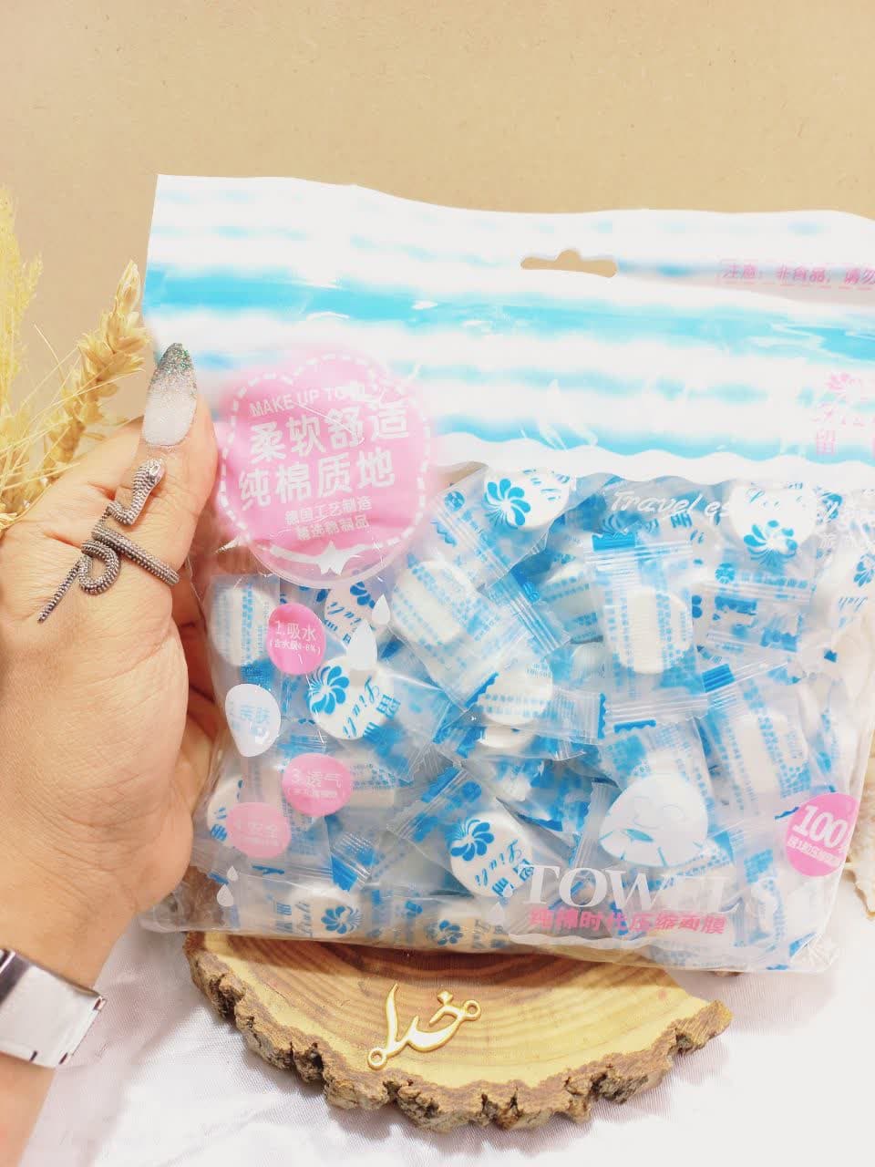 قرص ماسک 100 عددی همراه با کاسه لیولی TOWELS رنگ آبی| پخش عمده