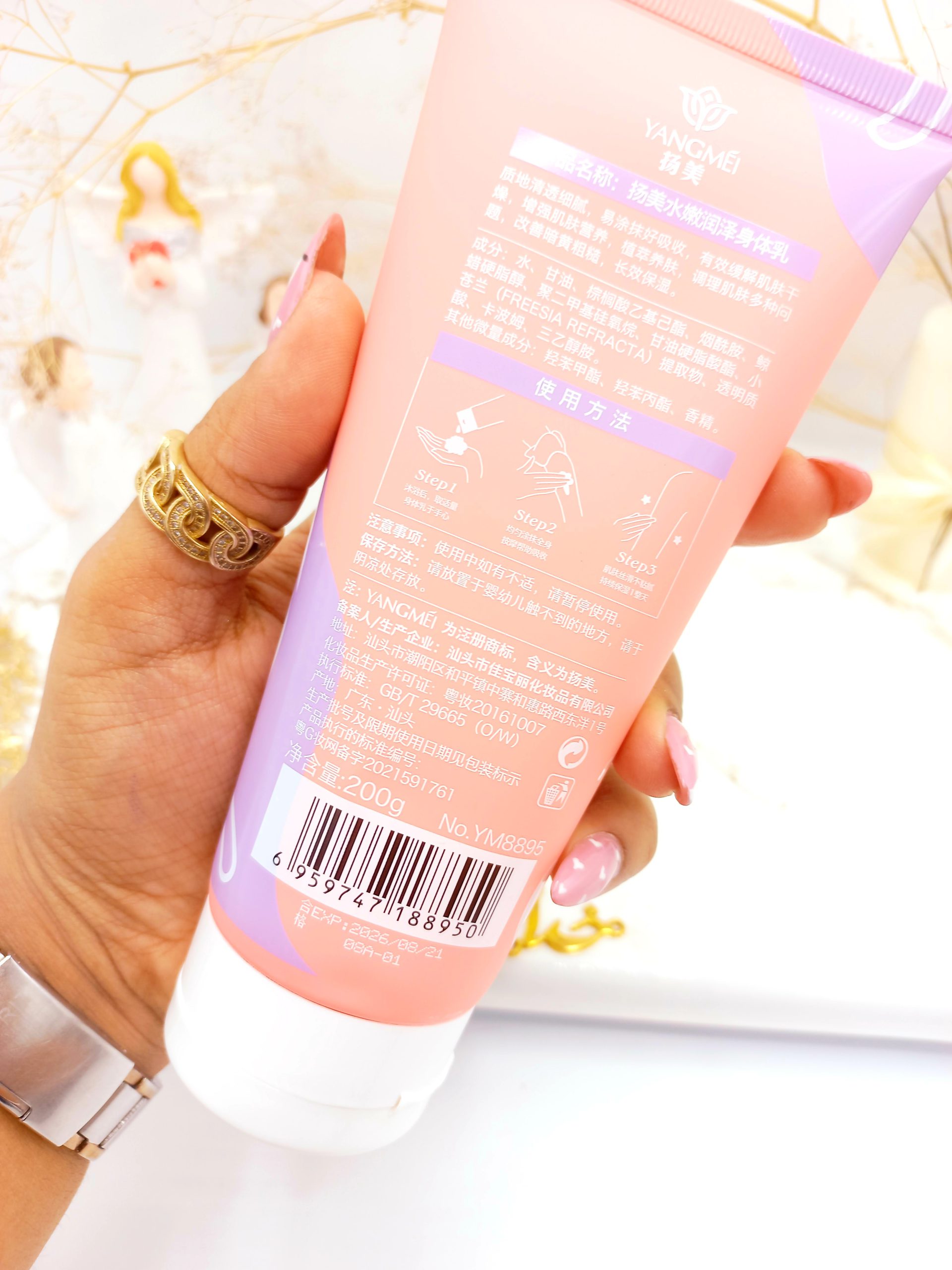 لوسیون بدن تیوپی شیر یانگمی کد ym8895 در وزن 200 گرم حاوی پروتئین شیر، نیکوتین آمید و عصاره گل فریزیا که بوی نامطبوع بدن را گرفته و پوست را آبرسانی ، روشن و براق می کند همچنین چربی پوست را تنظیم می کند