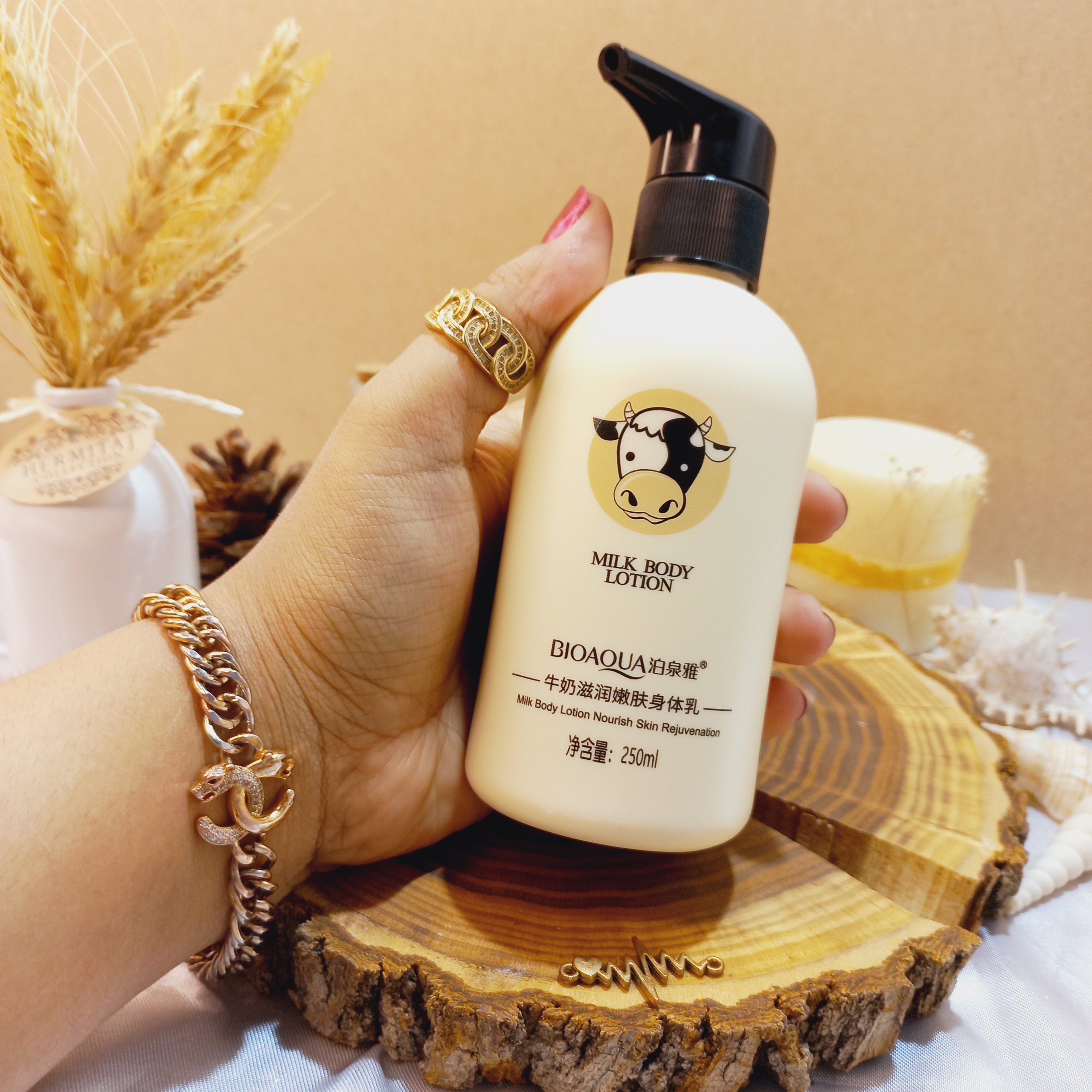 لوسیون بدن شیر گاو بیوآکوا کد BQY2232 در حجم 250 میل حاوی پروتئین هیدرولیز شده شیر مرطوب کننده و طراوت بخش پوست بدن می باشد.