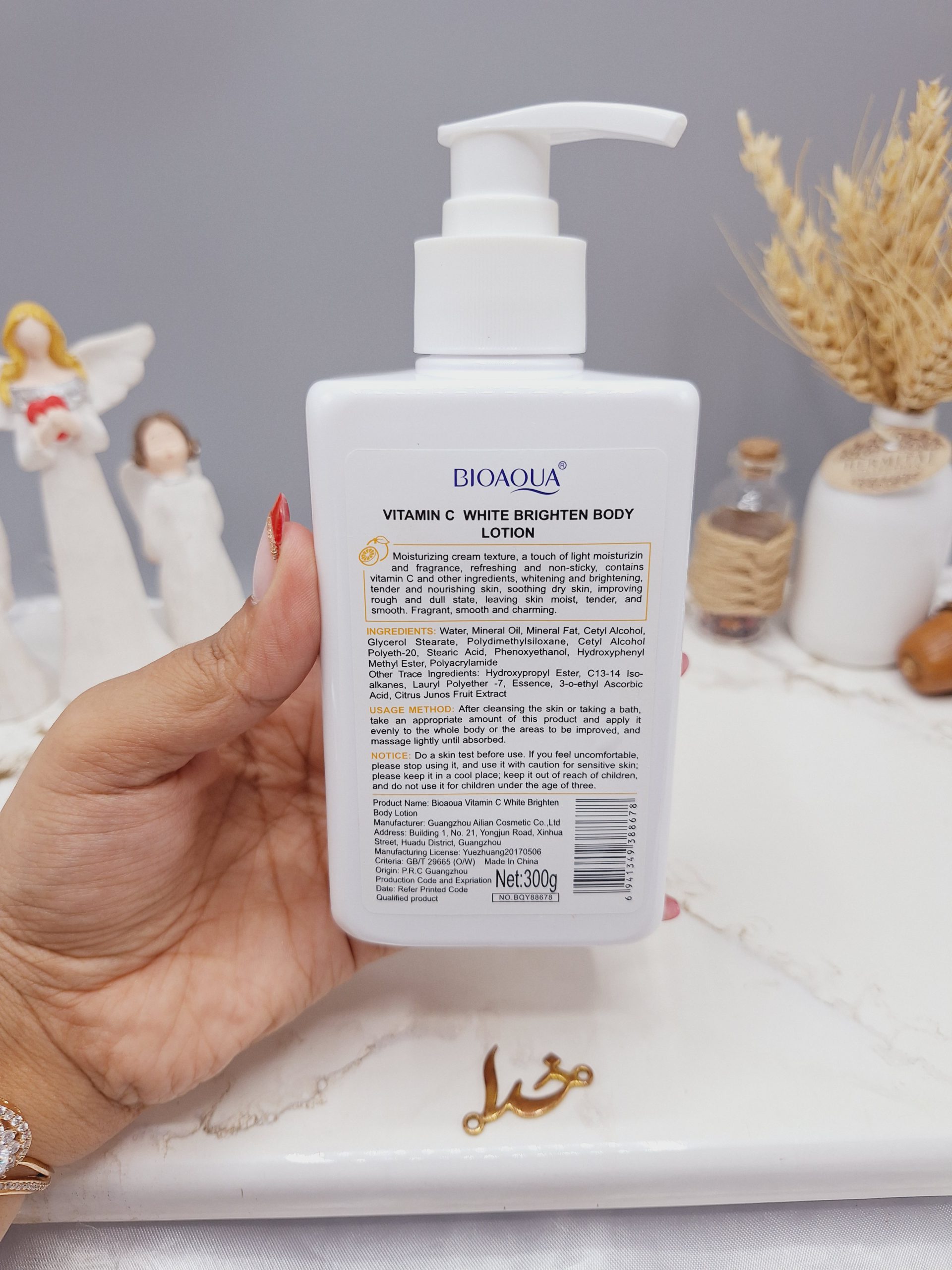 لوسیون بدن سفید کننده و نرم کننده پوست حاوی ویتامین C برند بیوآکوا BIOAQUA؛ روشی نوین برای داشتن پوستی روشن و جوان است. با لوسیون سفید کننده و نرم کننده پوست ویتامین سی بیواکوا، پوستتان را به یک تجربه جدید از روشنایی و شادابی تبدیل کنید. فرمولاسیون حاوی ویتامین سی، عنصرهای مغذی و آنتیاکسیدانهای قوی دارد که به بهبود ظاهر و سلامت پوست شما کمک میکند.