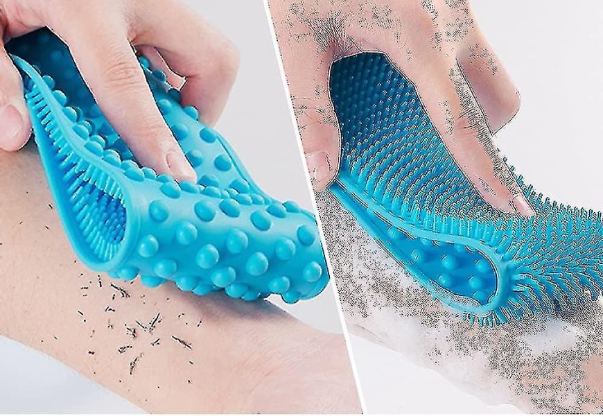 لیف سیلیکونی دسته دار حمام با الیاف سیلیکونی پرزدار و طرف دیگر برجسته برای شستشوی عمیق پوست و ماساژور جهت بهبود گردش خون،لیف حمام سیلیکونی