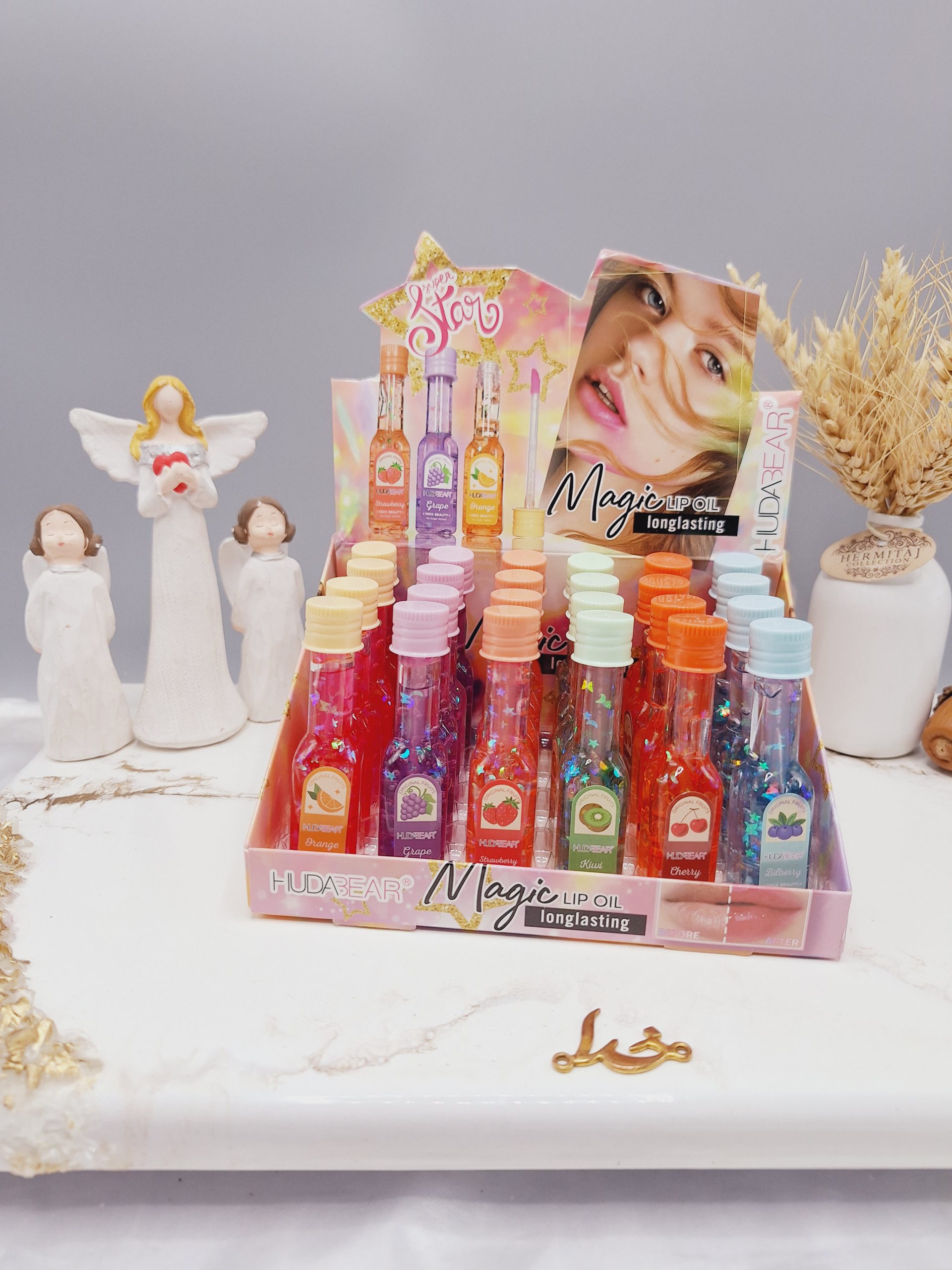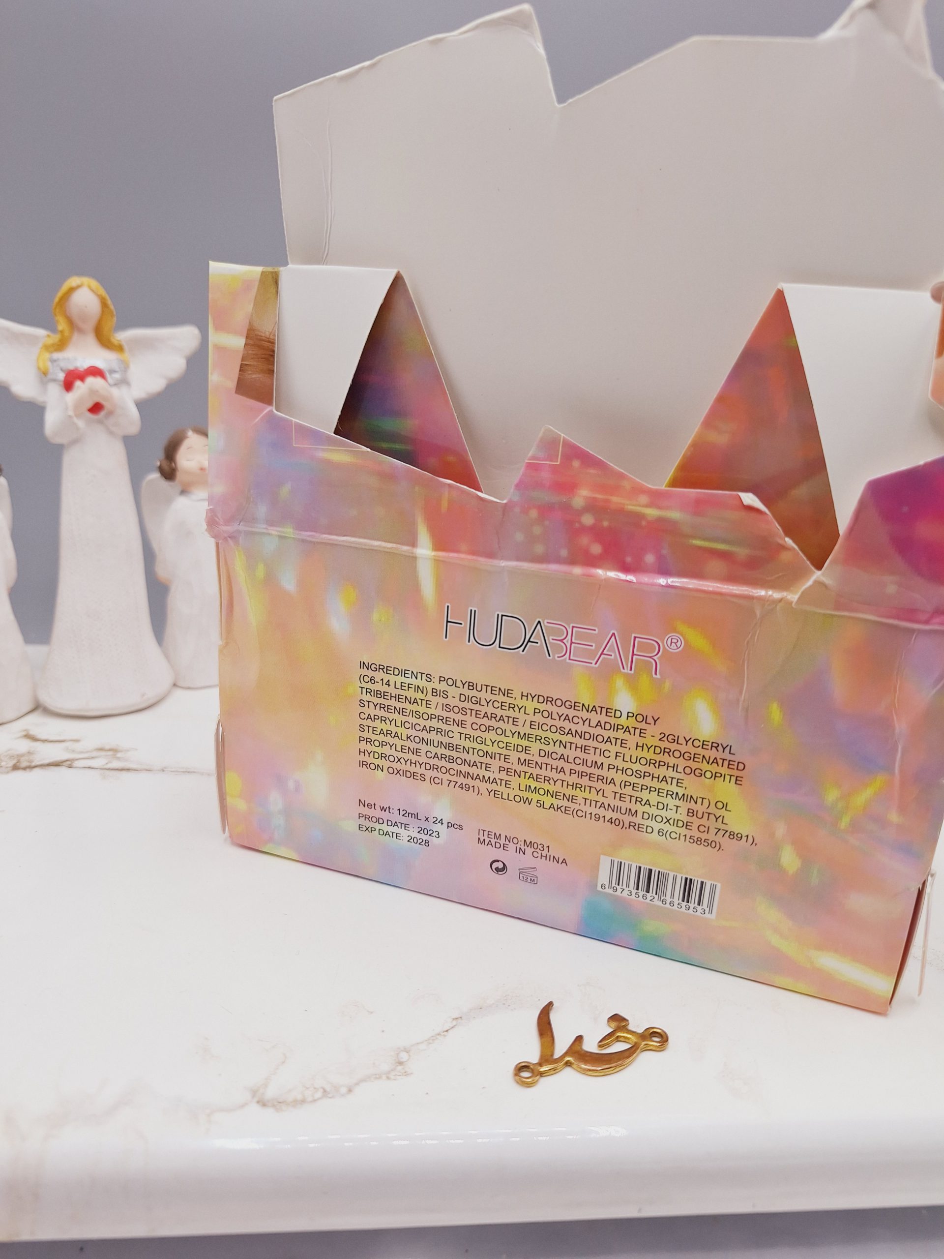 لیپ گلاس شاین دار طرح بطری شامپاین برند هدا بر HUDA BEAR کد M031