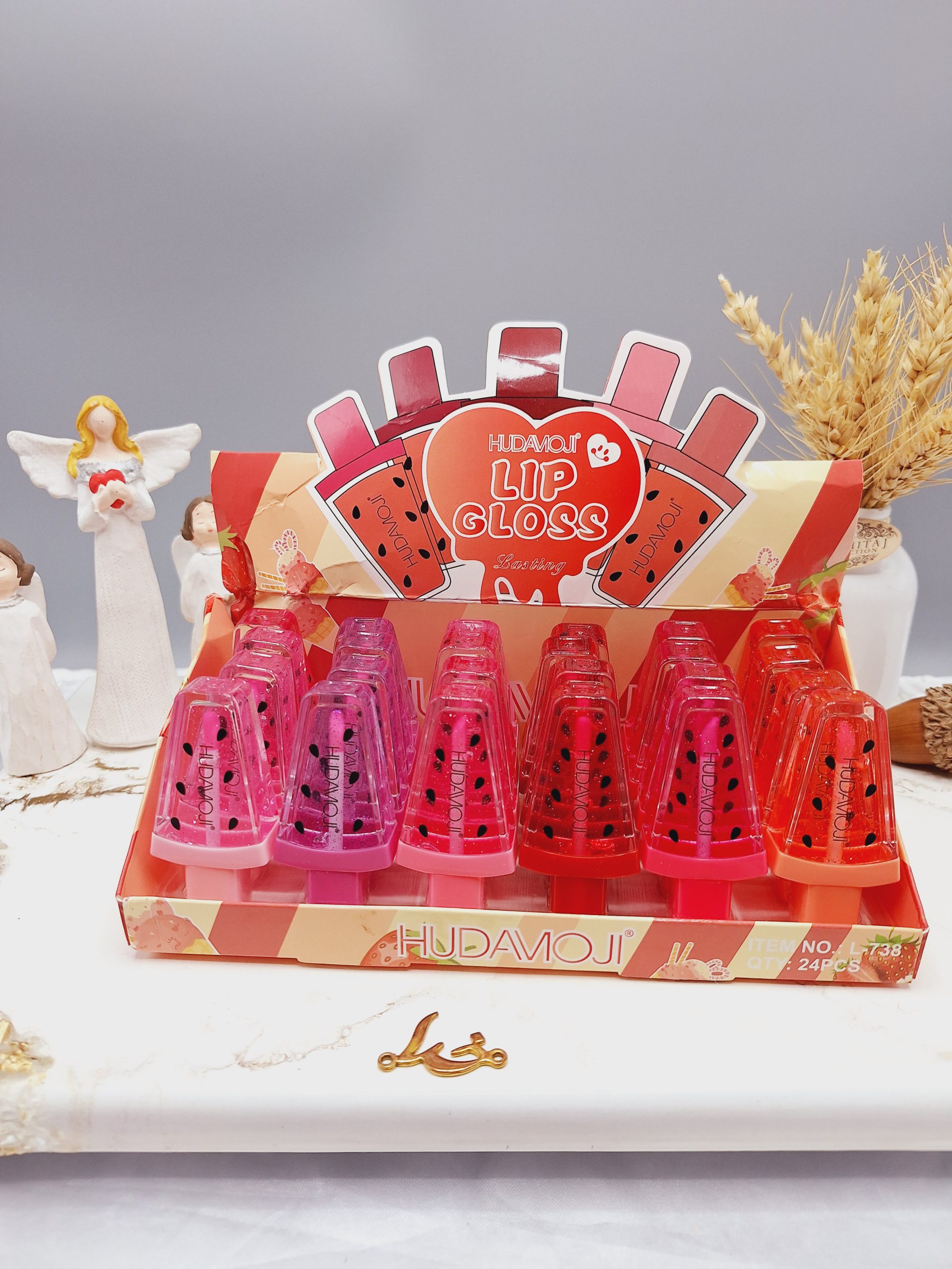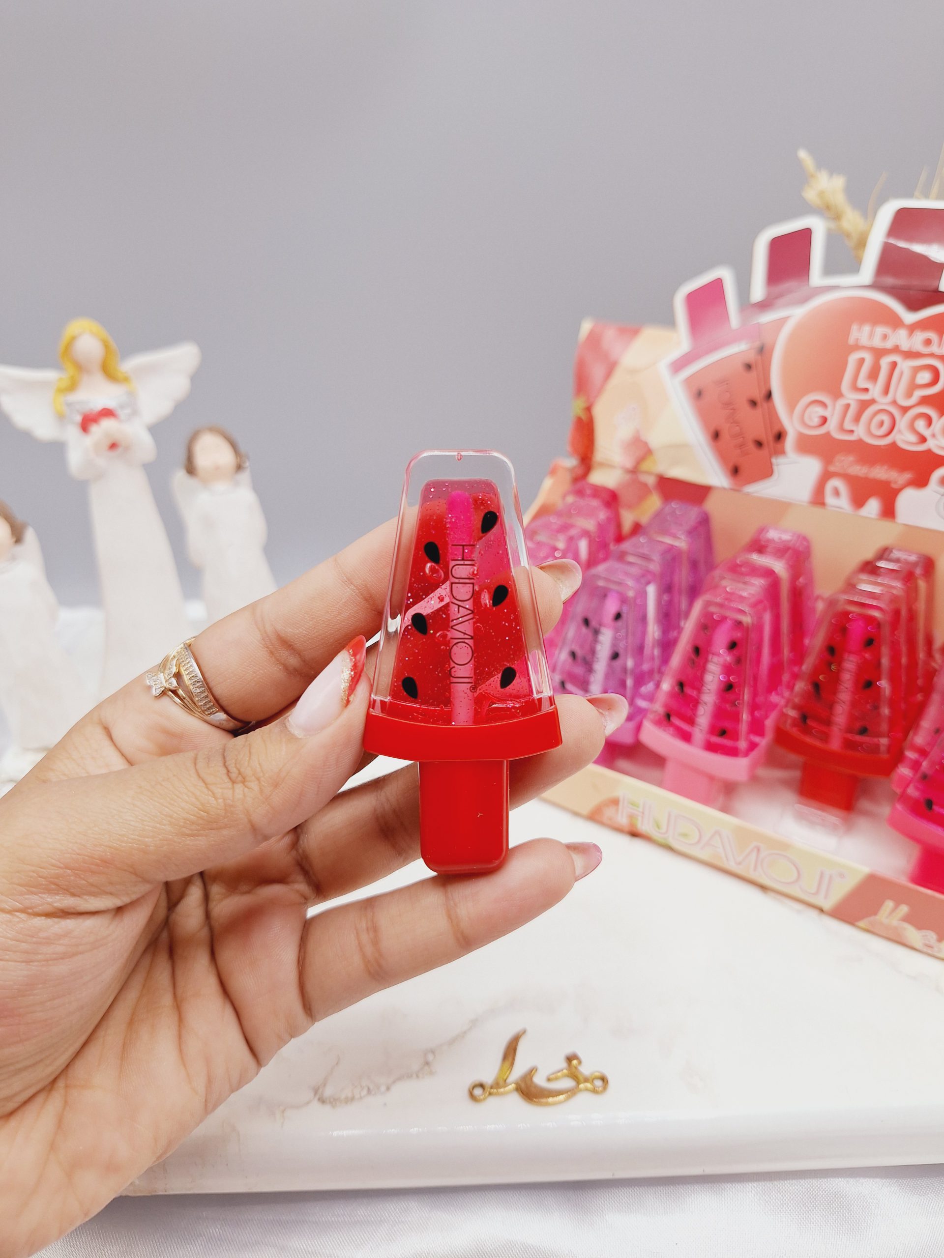 لیپ گلاس شاین دار طرح هندوانه با بوی محشر برند HUDAMOJI کد L738
