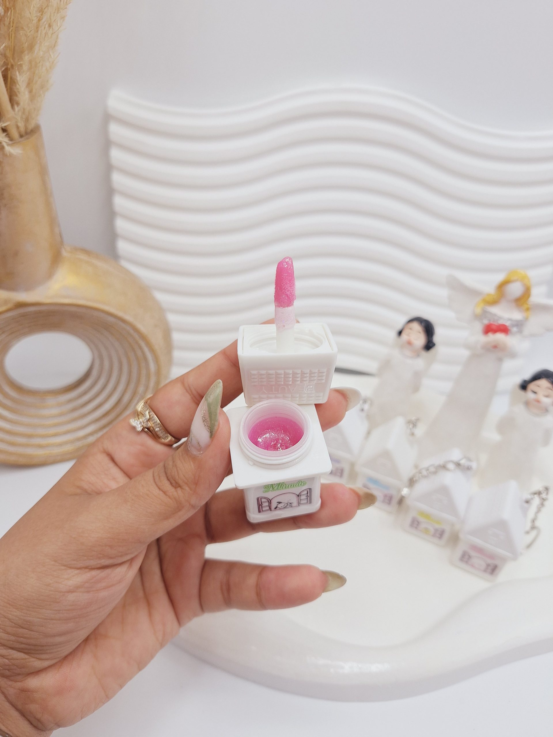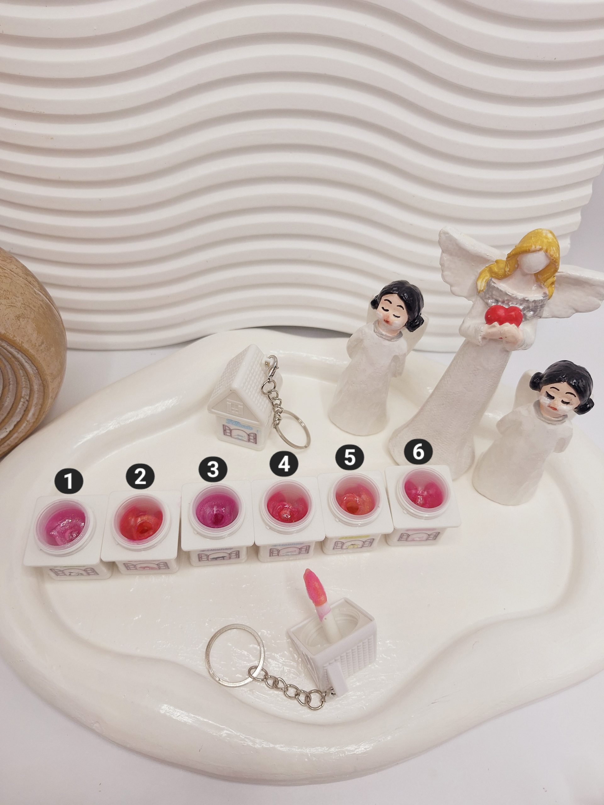 لیپ گلاس طرح خونه🏠🥺 یکی از جذاب ترین لیپ گلاس های شاین دنیاست😭💔 یه بافت مخملی داره🥲💗 شاین اش خیلی دلبره✨️ بوی شون محشره🙈🫠 6 تا رنگ بندی زیبا دارهه🌈