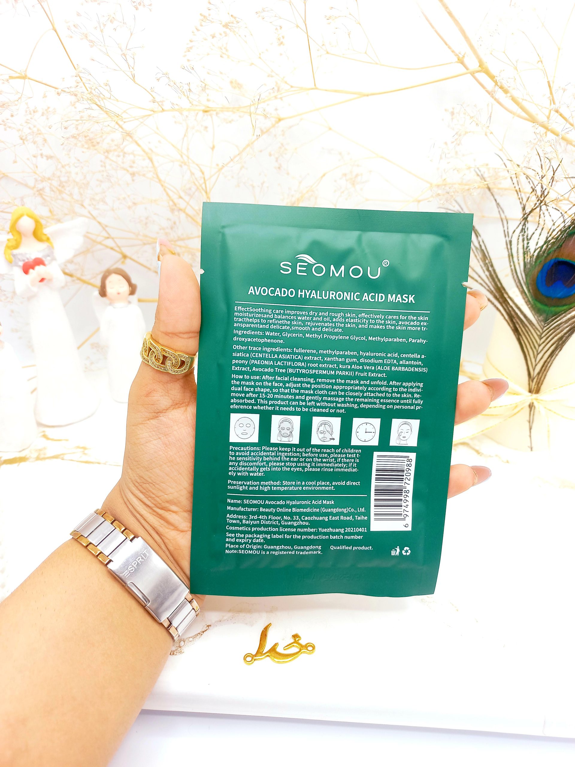 آووکادو سرشار از بیوتین (Biotin) و ویتامین های مفید بوده که برای پوست بسیار مناسب میباشد. به دلیل خواص فوق العاده ی آووکادو از آن در تولید ماسک های ورقه ای نیز استفاده میشود. استفاده از ماسک ورقه ای ترمیم کننده آووکادو سبب افزایش کلاژن سازی پوست شده و به همین جهت آثار پیری و چین و چروک های پوست را از بین میبرد همچنین این ماسک در درمان جای جوش و آکنه های پوستی موثر عمل کرده است.