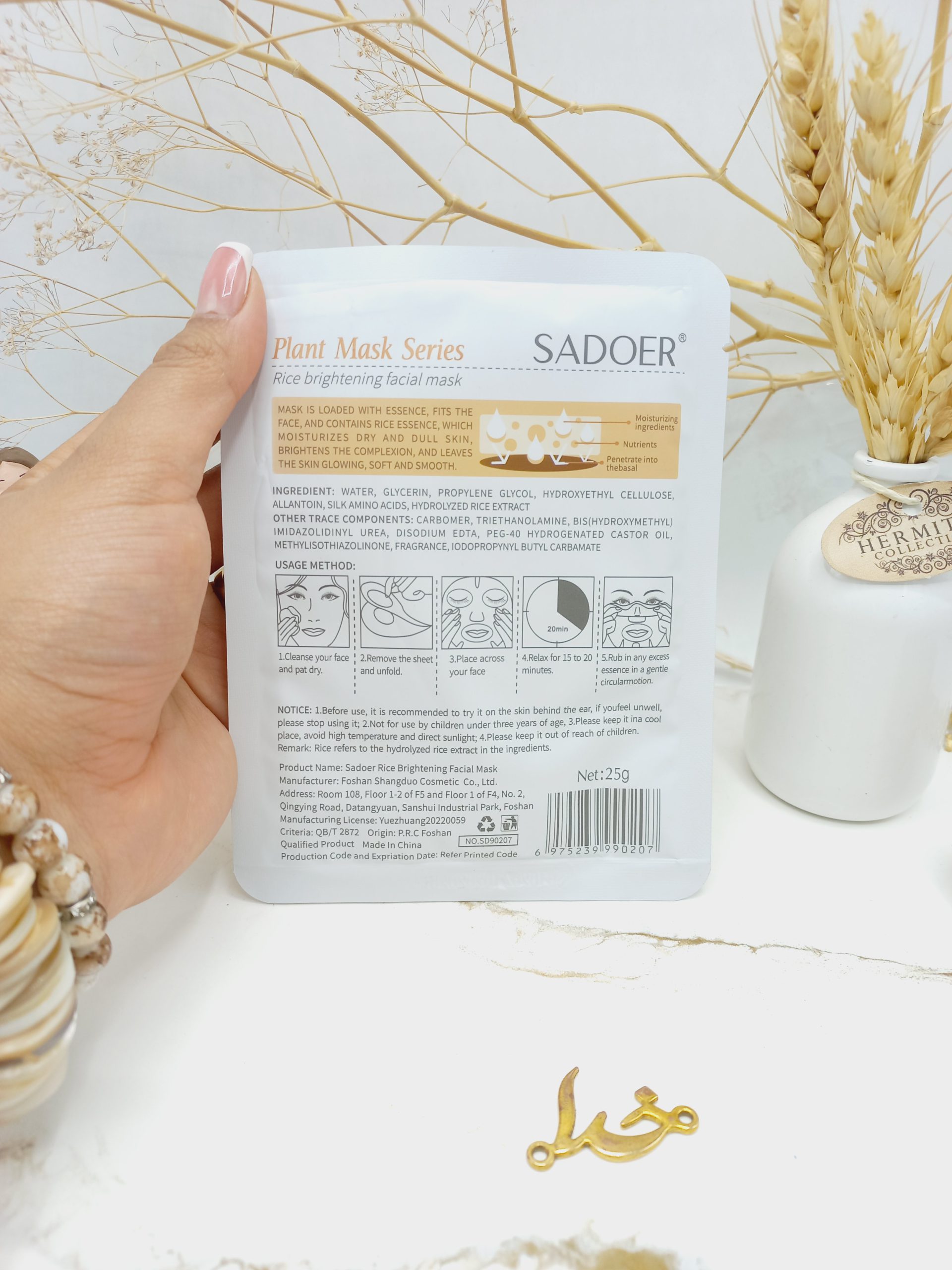 ماسک صورت ورقه ای برنج سادور کد SD90207 با وزن 25 گرم یک نرم کننده ،آبرسان ومرطوب کننده عالی برای پوست شما می باشد.