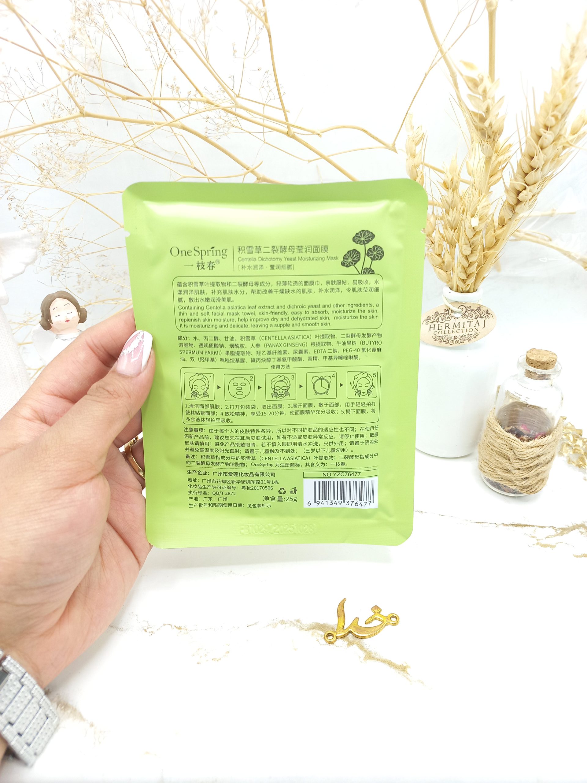 ماسک صورت ورقه ای سنتلا وان اسپرینگ کد YZC76477 حاوی عصاره گیاه سنتلا می باشد و جوانسازی و هیدراته کننده پوست می باشد.