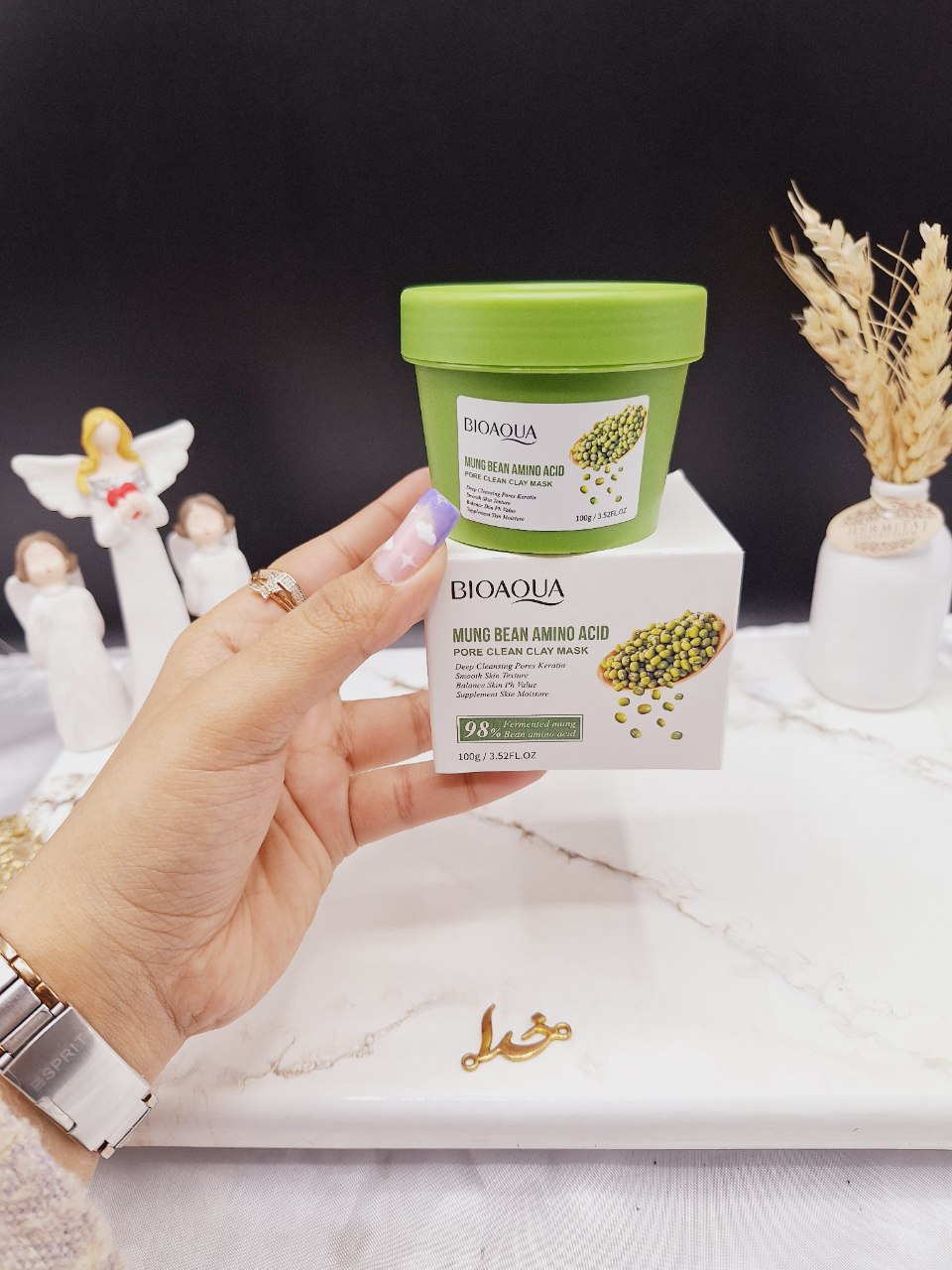 ماسک صورت گلی کاسه ای ماش درمان جوش و منافذ دارای آمینو اسید بیوآکوا BIOAQUA کد BQY53928 ، مادهای باور نکردنی برای زیبایی و پاکسازی پوست صورت است. این ماده دارای بیش از 60 نوع مادهی معدنی طبیعی مانند آهن، کلسیم، منیزیم، سیلیس، و پتاسیم است. همین ویژگی باعث شدهاست قرنها از این خاک برای درمان برخی از بیماریها، خصوصا بیماریهای پوستی استفاده شود. بنتونیت چربیها و ناخالصیهای درون منافذ پوست را به خوبی بیرون میکشد. استفاده از ماسک ماش بیواکوا پوست شما را در مواد معدنی غوطهور میکند و در عین حال جوشهای سر سیاه را از بین میبرد. همچنین ماسک گلی ماش و آمینواسید بایواکوا علاوه بر تغذیه سلول های پوست، پوست را بطور طبیعی سم زدایی کرده و ناخالصی ها را از پوست بیرون می کشد. این ماده منافذ عمیق پوست را تمیز و منافذ را بسته و پوست را نرم نگه می دارد. همچنین آمینو اسید موجود در این ماسک رطوبت مورد نیاز پوست رو عمیقا تامین کرده و پوست صورت رو سفت و محکم می کند.
