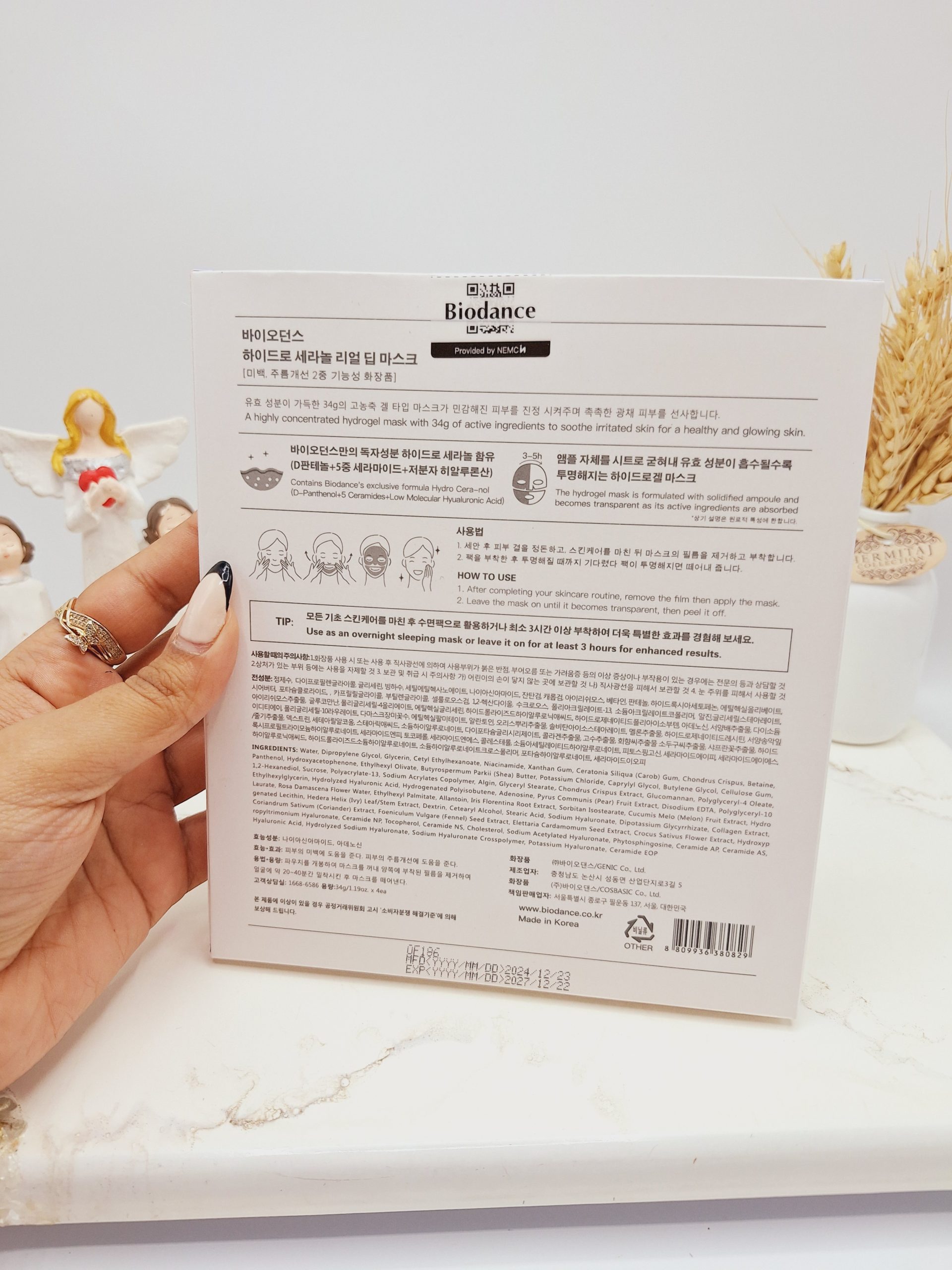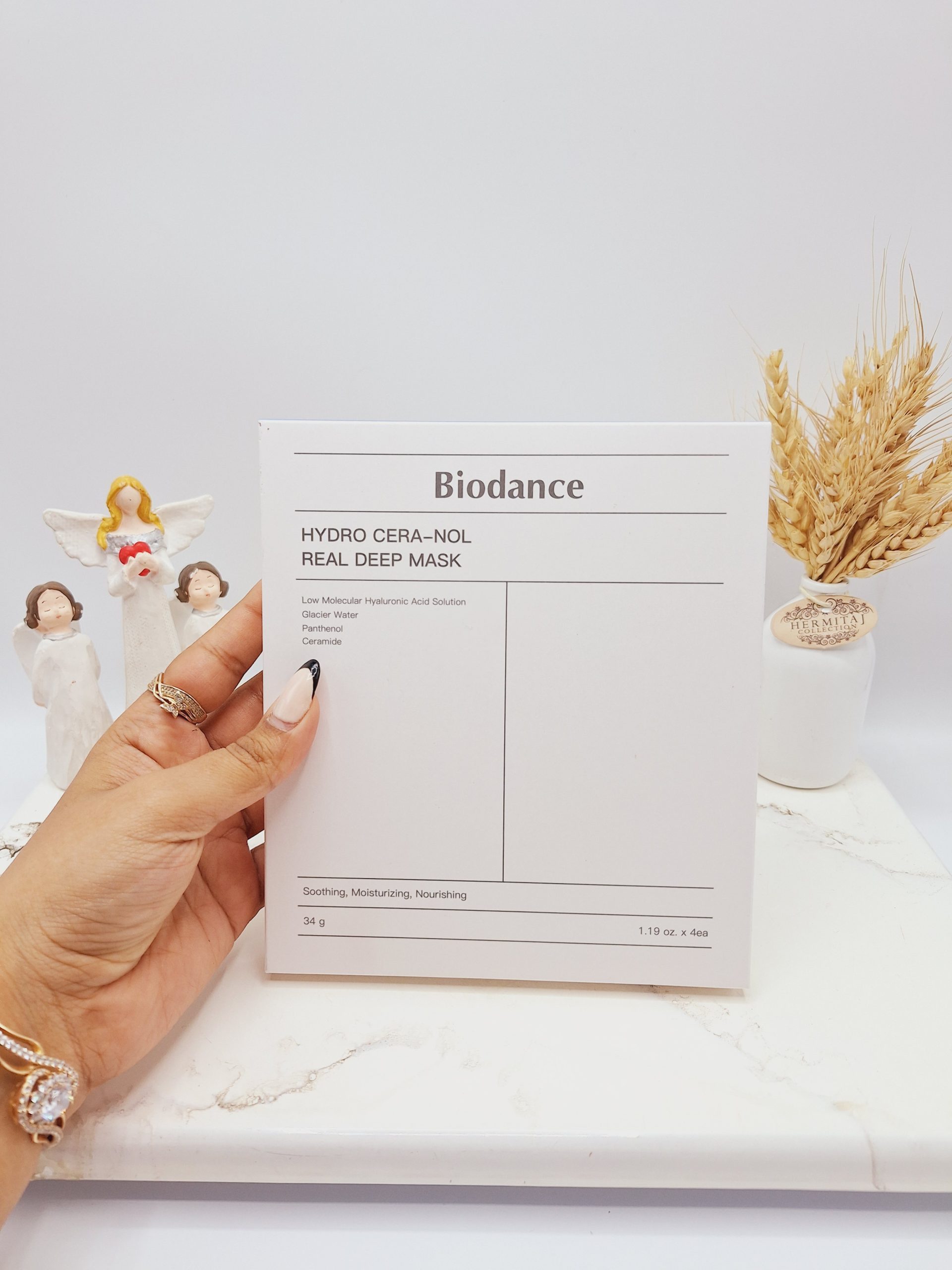 ماسک آبرسان و تغذیهکننده بیودانس (Biodance Hydro Cera-Nol Real Deep Mask) یک ماسک ورقهای با فرمولاسیون پیشرفته برای تأمین رطوبت، تغذیه و آرامشبخشی پوست است. این محصول با ترکیبات هیالورونیک اسید، آب یخچالی، پانتنول و سرامید به تقویت سد دفاعی پوست کمک کرده و خشکی و حساسیت را به طور موثری کاهش میدهد.