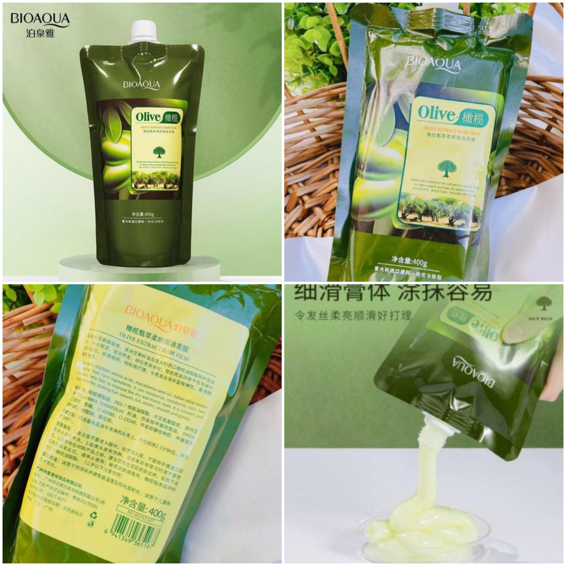 ماسک مو ساندیسی صاف کننده و مغذی زیتون بیوآکوا کد bqy65167 مناسب داخل حمام می باشد و نرم کننده و آبرسان قوی مو می باشد و مغذی کننده و آبرسان مو می باشد.