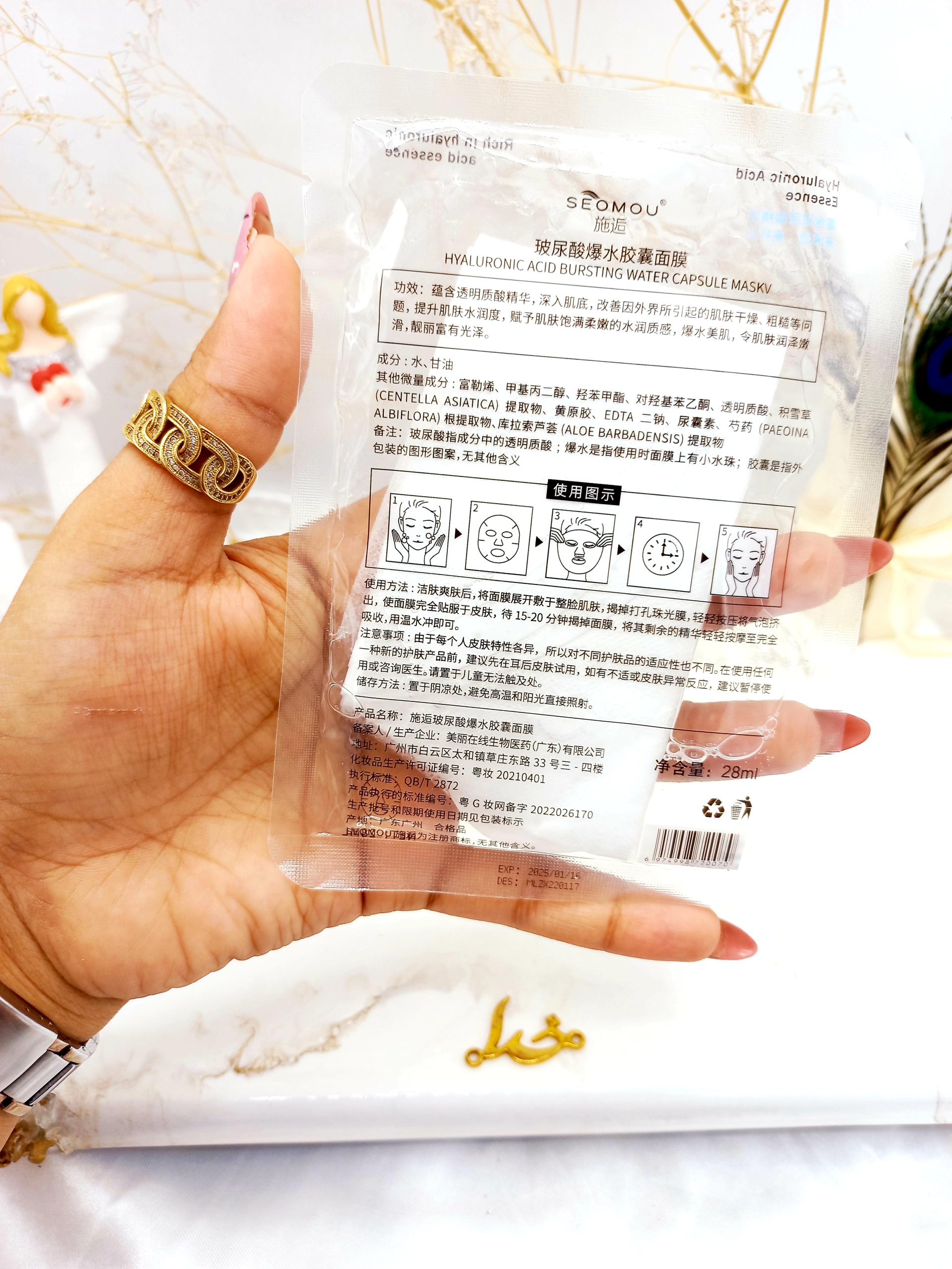 ماسک ورقهای آبرسان و شفاف کننده هیالورونیک اسید کپسولی SEOMOU کد 0070 هم که به شکل فوق العاده ای پوست را آبرسانی کرده ، خاصیت سفت کنندگی داشته و باعث پوستی نرم و لطیف میشود. این مادهی حیاتی به طور طبیعی در بدن ما وجود داشته ولی با مرور زمان کاهش پیدا میکند. پس با استفاده از لوازم بهداشتی مثل ماسک ورقه ای میتوانید خواص این مواد ارزشمند را به پوست خود تزریق کنید.