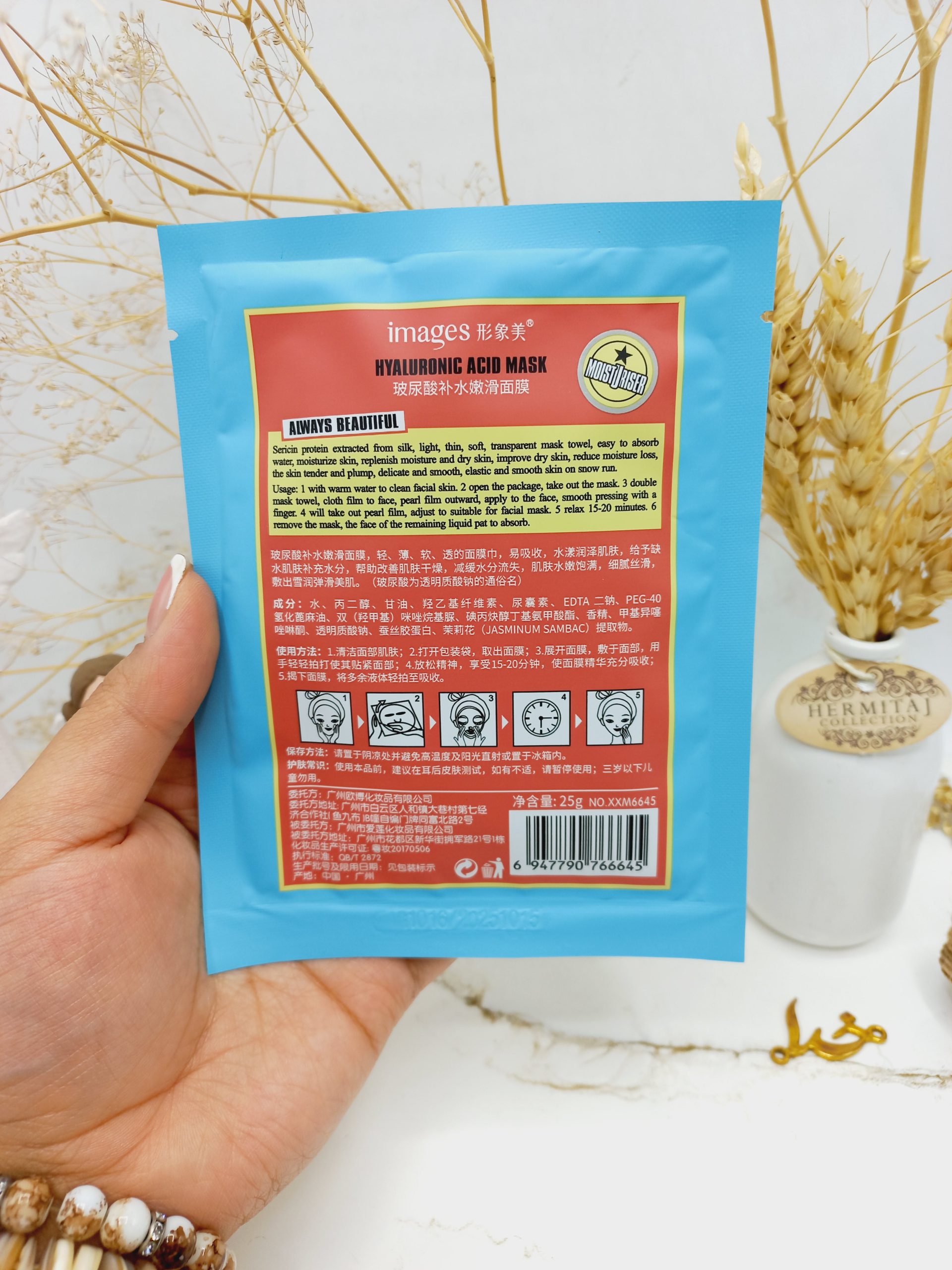 پوست شما با اسید هیالورونیک ، ماده ای فوق العاده که رطوبت را در حفظ می کند ، عمیقاً آبرسانی و مرطوب می شود این محصول با احیای بیرونی ترین لایه پوست ، ظاهری نرم ، صاف و جوانتر به شما می بخشد همچنین با تقویت بافت پوست خطوط ریز را بهبود می بخشد و چهره ای جوان و جذاب به شما هدیه می بخشد. علاوه بر موارد بالا پوست شمارا از اشعه UVB آفتاب محافظت می کند. ماسک ورقه ای مرطوب کننده هیالرونیک اسید ایمیجز حاوی عصاره های گیاهی است و به بهبود پوست با خواص بازسازی گیاه Centella Asiatica کمک می کنداین گیاه حاوی خواص ضد التهابی و آنتی باکتریال نیز است که این مورد این ماسک را برای پوست های ملتهب و حساس به گزینه ای مناسب تبدیل می کند. ماسک ورقه ای مرطوب کننده هیالرونیک اسید ایمیجز پوست را با اسیدهای آمینه ، بتا کاروتن ، اسیدهای چرب تغذیه می کند.