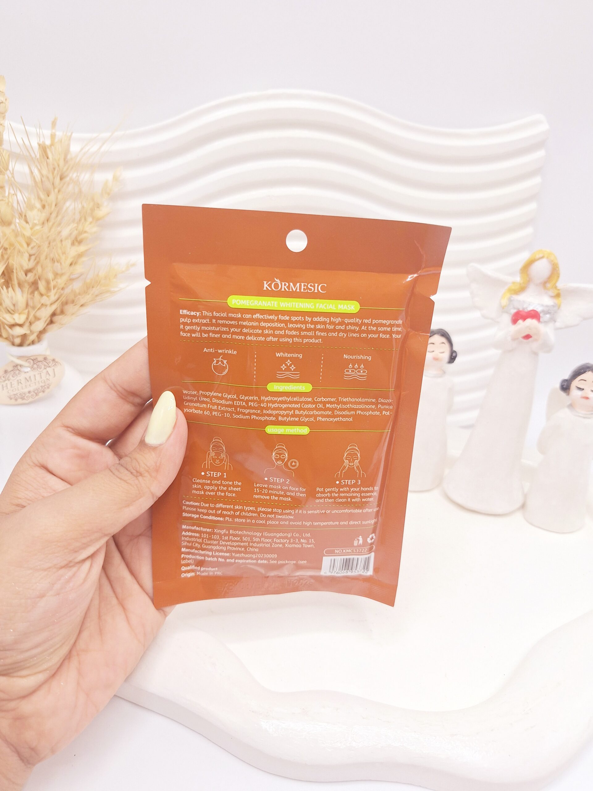 🍎 ماسک ورقه‌ای انار KORMESIC – کد 3722 ✨ روشن‌کننده و جوانساز پوست 💧 آبرسانی و شاداب‌کنندگی قوی 🌸 غنی از آنتی‌اکسیدان‌های طبیعی انار 💖 کاهش چین و چروک و کدری پوست 🌺 مناسب انواع پوست، مخصوصاً پوست خسته و بی‌روح
