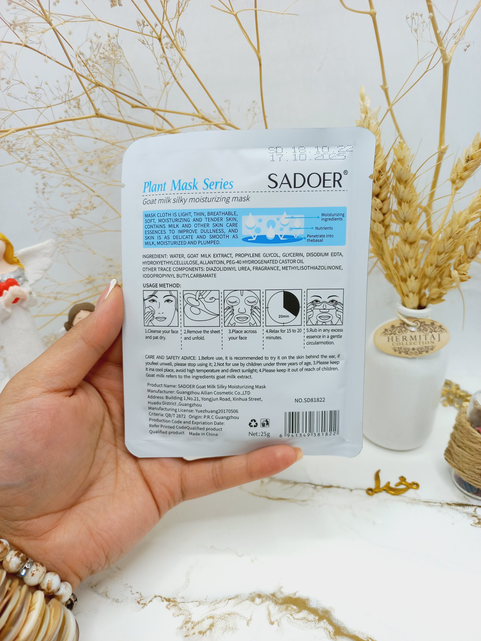 ماسک ورقه ای مغذی شیر سادوئر SADOER یک آبرسان عالی برای از بین بردن مشکلات پوستی از قبیل چین و چروکها خشکی و زبری پوست،