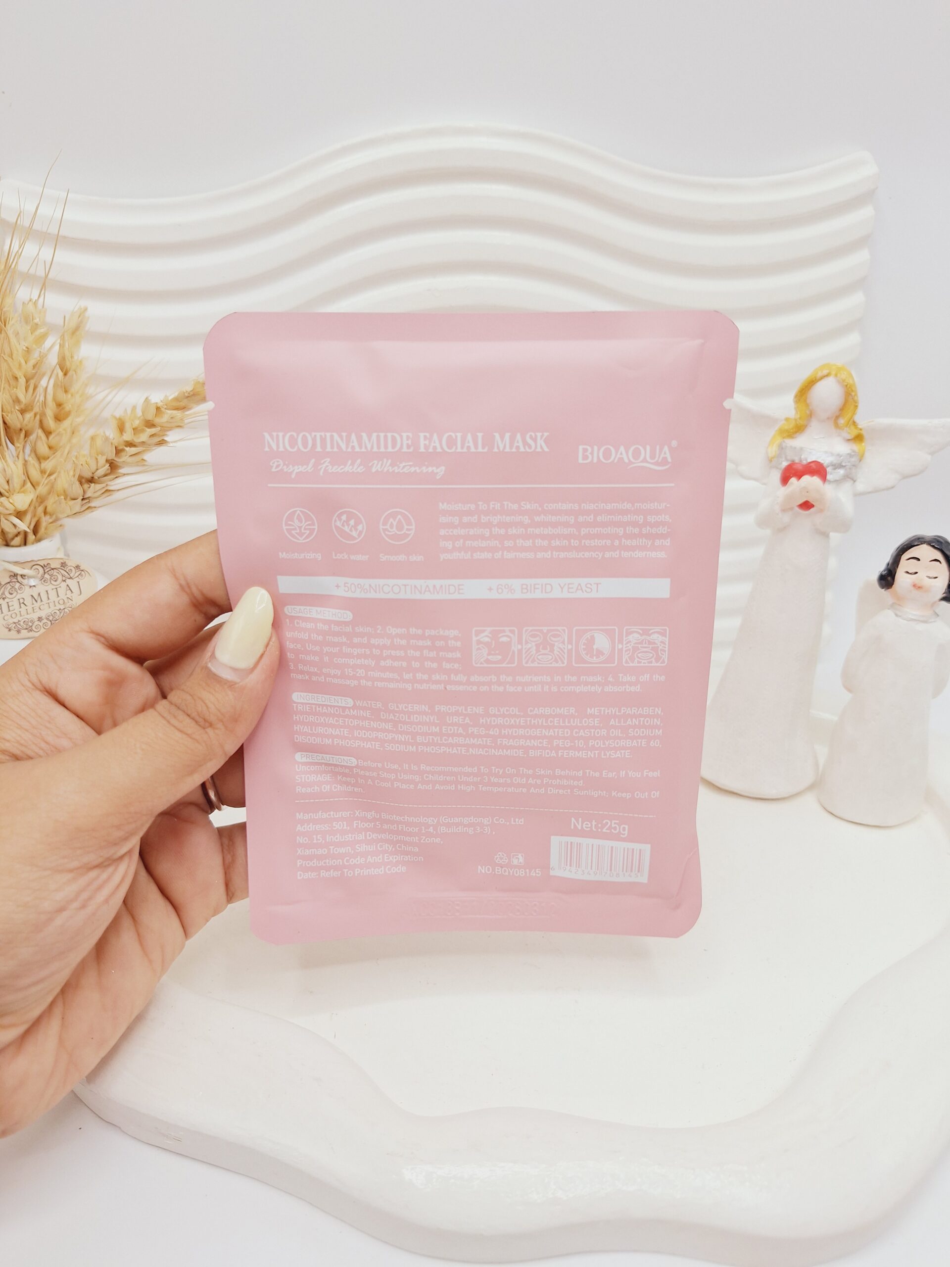 این ماسک با ترکیبات غنی از نیکوتینآمید، به کاهش تیرگی و لکههای پوست کمک کرده و پوست را شفاف، نرم و سالم نگه میدارد 🌿💎