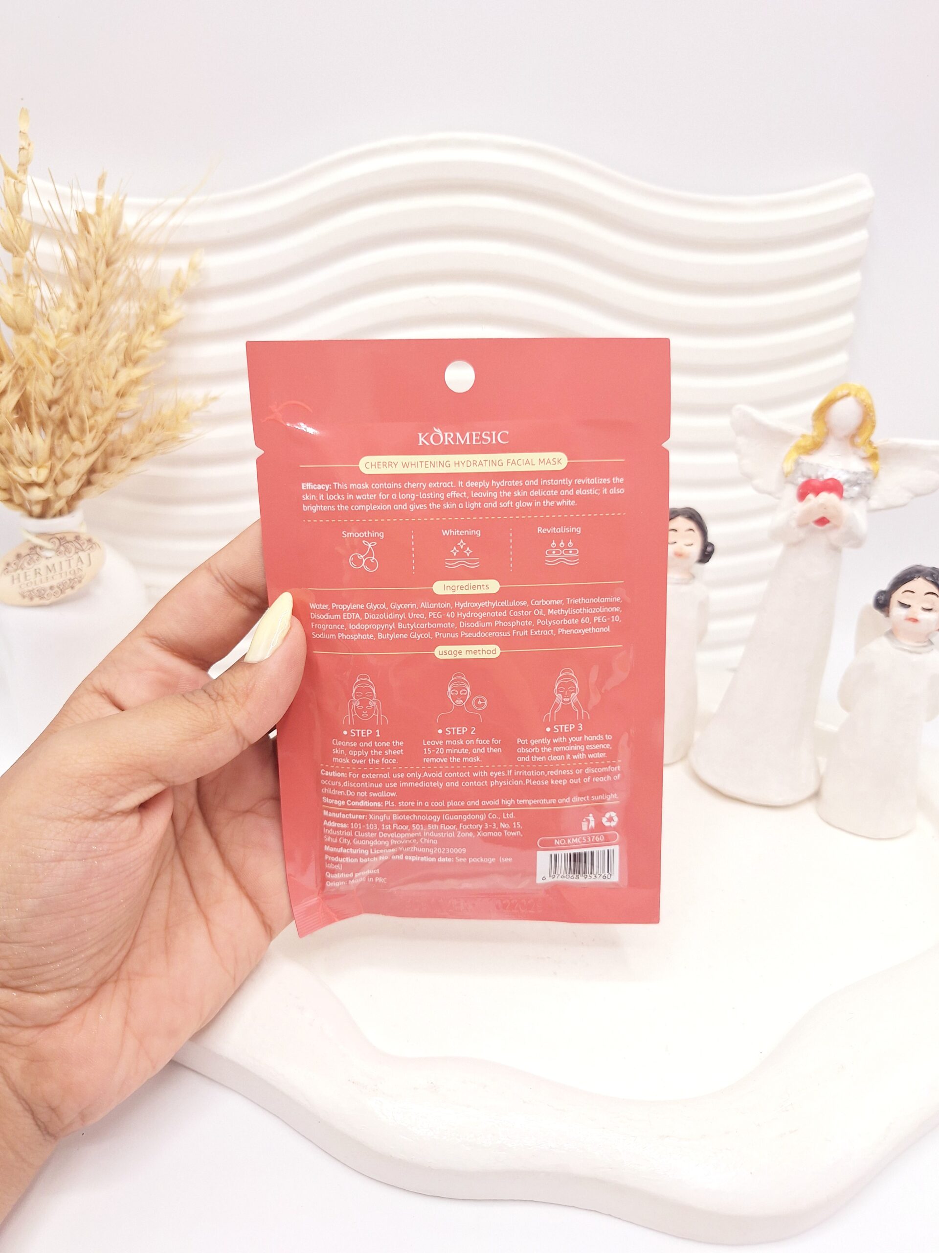 🍒 ماسک ورقه‌ای گیلاس KORMESIC – کد 3760 ✨ روشن‌کننده و شاداب‌کننده پوست 💧 آبرسانی و مرطوب‌کنندگی عمیق 🌸 غنی از عصاره گیلاس طبیعی 💖 کاهش خستگی و کدری پوست 🌺 مناسب انواع پوست، مخصوصاً پوست خشک و کدر