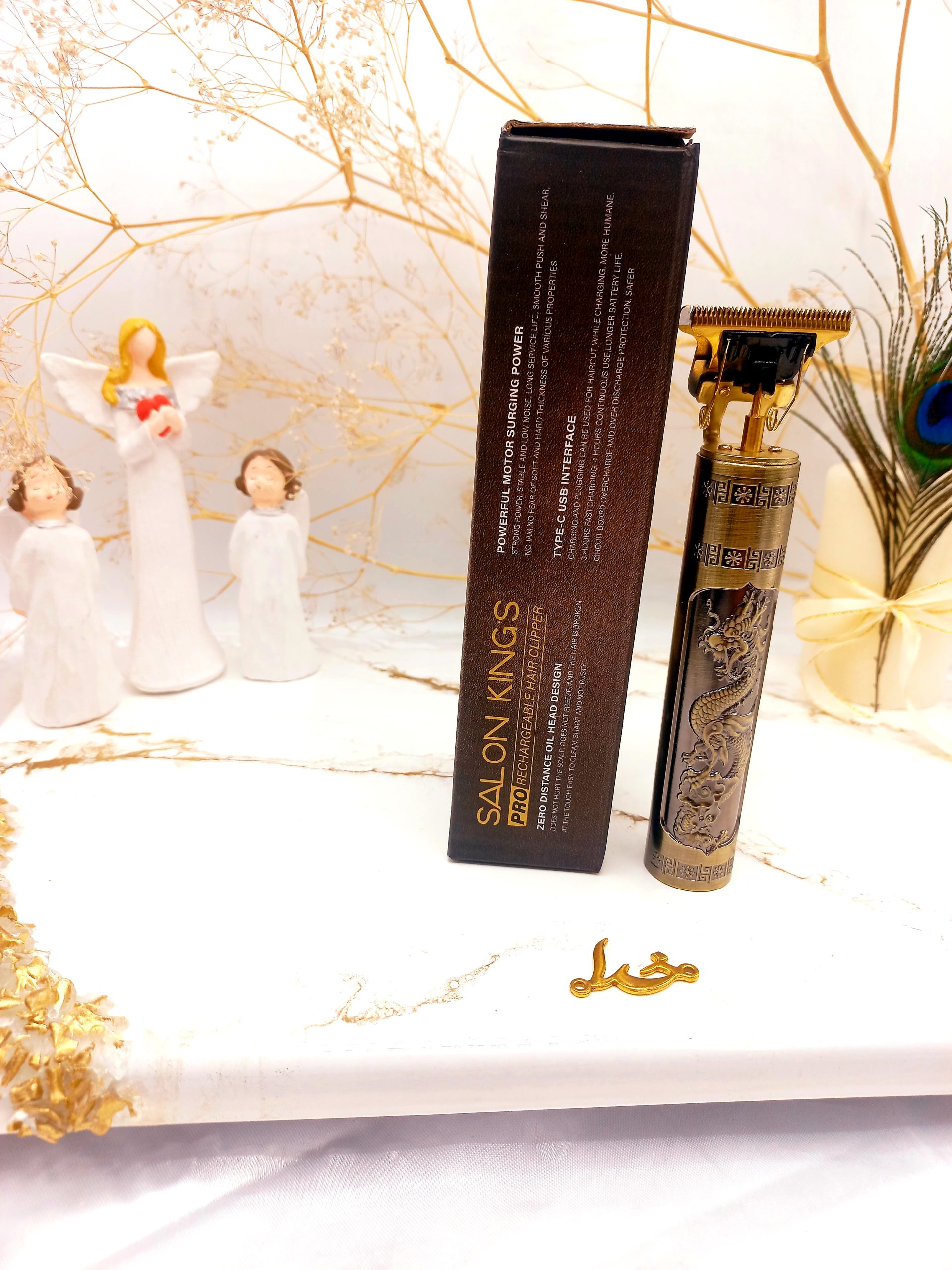 ماشین اصلاح موی صورت وینتیج مدل T9 از سری ماشین اصلاحهای بسیار زیبا و باکیفیت است که به خاطر ابعاد مناسبی که دارد، گاهی اوقات از آن به عنوان ماشین اصلاح سفری نیز یاد میشود. ظاهر این ماشین اصلاح نیز طراحی خاصی دارد و دارای نقوشی از اژدها و سیمرغ است که باعث شده از سایر محصولات مشابه متمایز شود. تیغه این ماشین اصلاح موی صورت از جنس استیل ضدرنگ است و توانایی اصلاح با شماره صفر را دارد. اما باید توجه داشته باشید که مانند یک ریش تراش نمیتواند عمل کند و عملکرد آن نزدیک به اصلاح صفر است. ماشین اصلاح موی صورت مدل VINTAGE T9 دارای چهار شانه 1.5، 2، 3 و 4 میلیمتری است و همراه با آنها یک فرچه برای تمیزکاری نیز ارائه میشود. دکمه خاموش/روشن این دستگاه در قسمت زیرین آن قرار دارد و نیروی محرکه آن نیز توسط یک باتری قابل شارژ تامین میشود. ویژگی بسیار مهم این محصول این است که همراه با آن یک عدد شارژر USB باتری نیز ارائه میشود که میتوانید با آن باتری ماشین اصلاح را شارژ کنید. این باتری از نوع لیتیوم یون است و با یکبار شارژ کامل (حدود 2 الی 3 ساعت) میتوانید تا 2 ساعت از ماشین اصلاح استفاده کنید. موتور این ماشین اصلاح نیز 5 واتی است که به همین خاطر توانایی خوبی در اصلاح موی صورت شما از خود نشان میدهد. برای اصلاح مو برای اینکه پوست شما دچار آسیب نشود، در جهت خلاف رویش مو، ماشین را روی صورت بکشید.