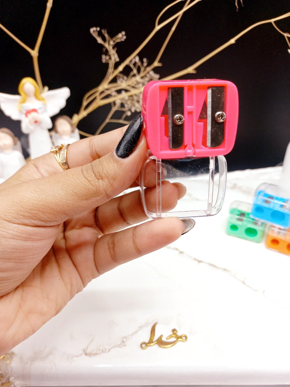 (کیفیت عالی) است. یک مدادتراش دوتایی با درب محافظ که قابلیت تراشیدن مدادهای کوچک و بزرگ را دارد. در کیف آرایشی شما انواع و اقسام مداد های آرایشی دیده می شود. هر کدام از آنها پس از مدتی استفاده نیاز به تراشیده شدن دارند. این مداد تراش باکیفیت بهترین انتخاب در این زمینه می باشد.