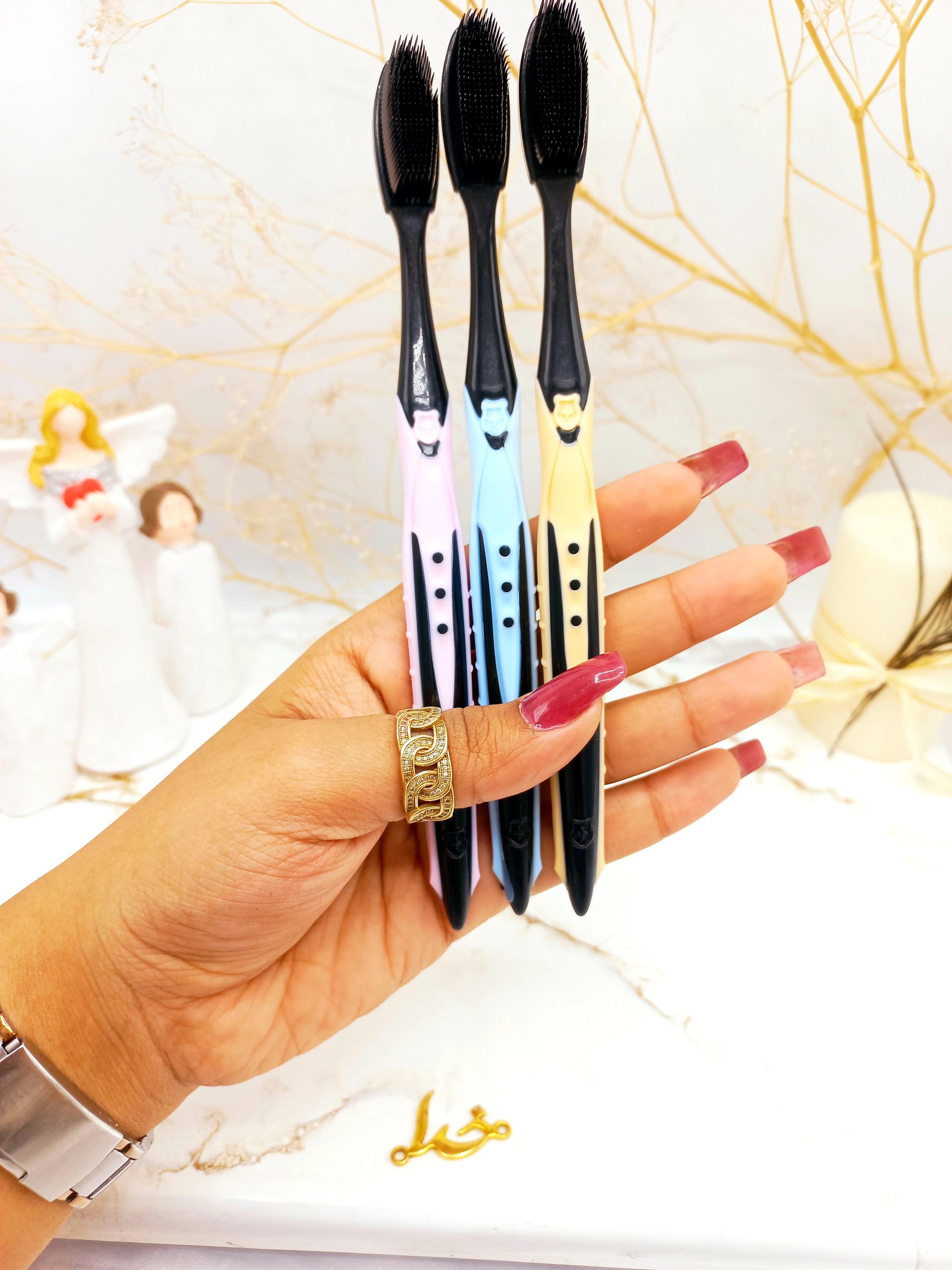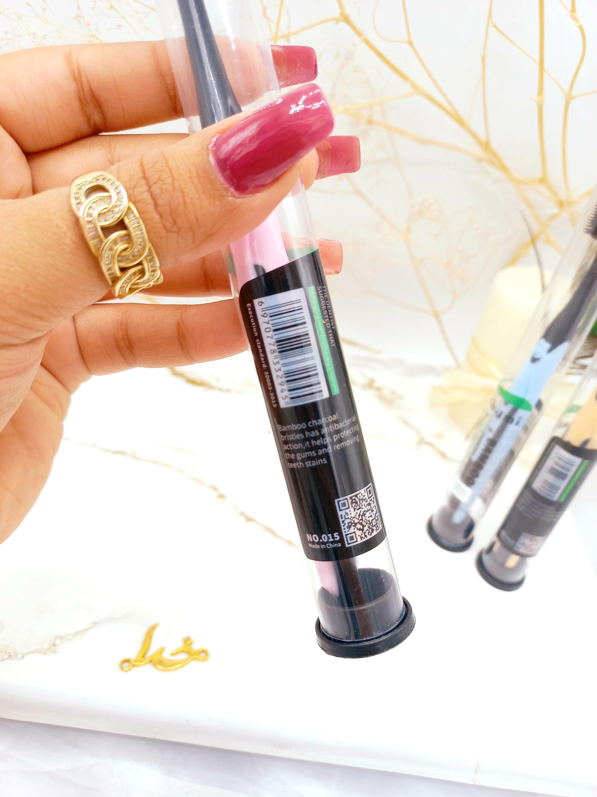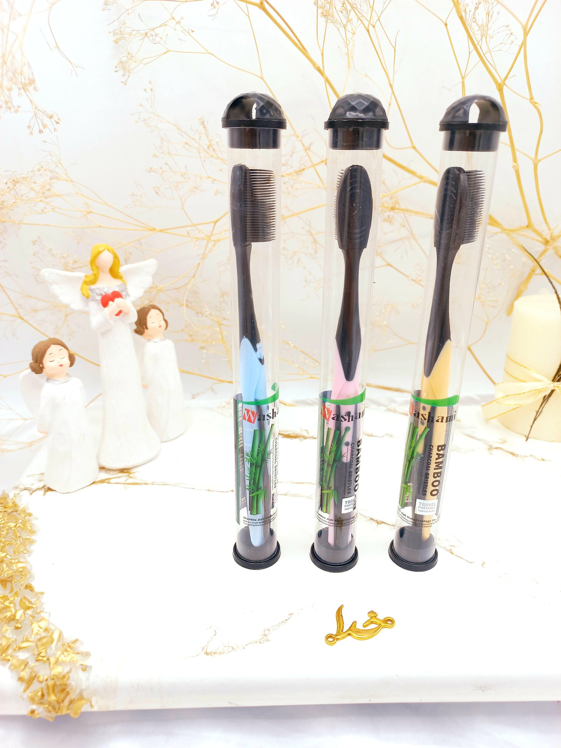 مسواک نانو طرح بامبو برند واشامی WASHAMI اصلی کد 015 به خاطر شیار های مخصوص بسیار محبوب می باشد، سری این مسواک از الیاف بسیار نرم چوب بامبو ذغالی ساخته شده و انتهای انها گرد هستند که باعث تمیزی چند برابری دندان ها میشود. قلم موی آن بر خلاف سنت مسواک؛ رنگ آن به صورت طبیعی سیاه می باشد که مشخصه و شاخص ذغال چوب بامبو و از یونهای فعال استخراج شده می باشد. این مسواک به راحتی باکتری ها و میکروب ها را به خصوص در نواحی بین دندان و مابین لثه از بین میبرد که باعث سفت شدن و استحکام لثه میشود. به علاوه دسته ی آن طراحی ارگونومیکی دارد که کاملا هنگام تمیزی دندان انعطاف پذیر هستند. اگر بخواهیم تمامی قابلیت های حقیقی این مسواک را بیان کنیم زمان زیادی را باید صرف کنیم ولی به طور مختصر آنها را معرفی و سه مورد آن را به صورت کامل توضیح می دهیم. قلم موی این محصول حاوی ذغال چوب بامبو با یون فعال می باشد که انتشار یون های منفی اکسیژن و مادون قرمز، به راحتی میتواند بسیاری از جرم روی سطح دندان را برداشته و می تواند به هر اسلات دندان نفوذ کند و دندان ها را سالم تر و سفیدتر نگه دارد. سری این مسواک از الیاف نرم ذغال چوب بامبو ساخته شده و انتهای آن گرد هستند که این باعث تمیزی 10 برابری نسبت به مسواک های معمولی می باشد. قلم موی این نوع مسواک به دلیل استفاده از ذغال چوب بامبو در مقایسه با مسواک های معمولی که سری آن ها از پلاستیک می باشد برتری زیادی دارد که ضد رطوبت، ضد باکتری و جذب قوی تر می تواند باعث شود که قلم مو را خشک نگه دارد که این خشک نگه داشتن منجر به عدم پرورش باکتری ها می شود.