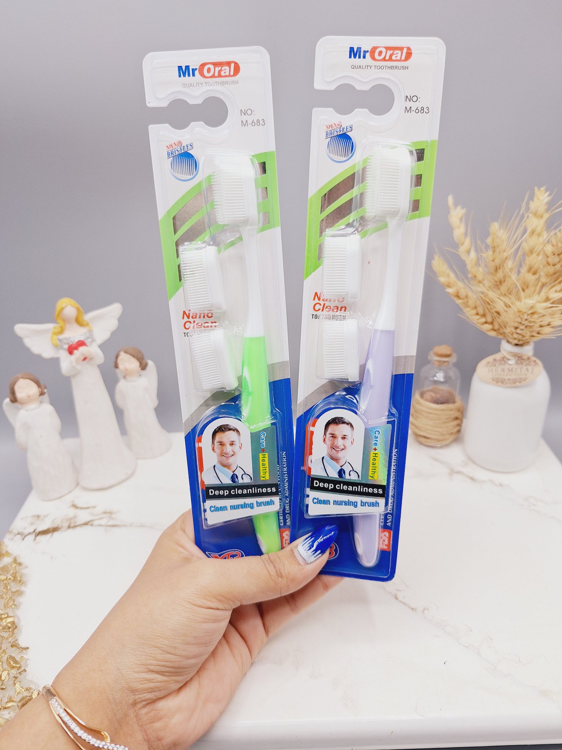 مسواک نانو مسدر اورال مدل M-683 با برس متوسط بدون نیاز به استفاده خمیر دندان دو عدد سری یدک