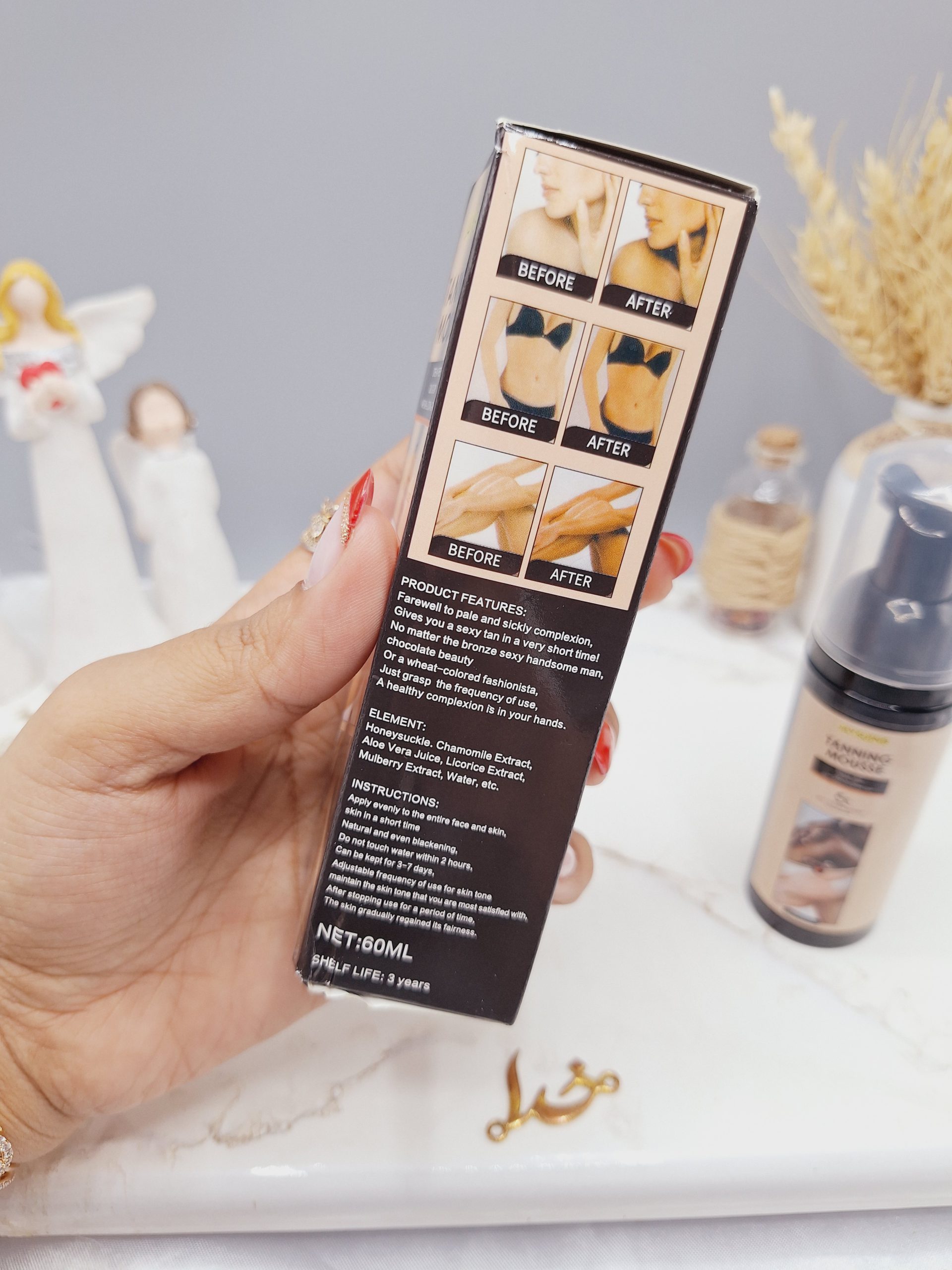 موس برنزه کننده پوست برند JAYSUING، برنزه کننده ای با اثر فوری و ماندگاری بلند مدت است که می تواند بدون نیاز به نور خورشید، رنگ برنزه یکنواختی بر روی پوست ایجاد نماید. فرمولاسیون پیشرفته و مدرن این محصول به دلیل داشتن عصاره های گیاهی ویژه، سبب تقویت و تیره شدن پوست با رنگ طبیعی میشود.