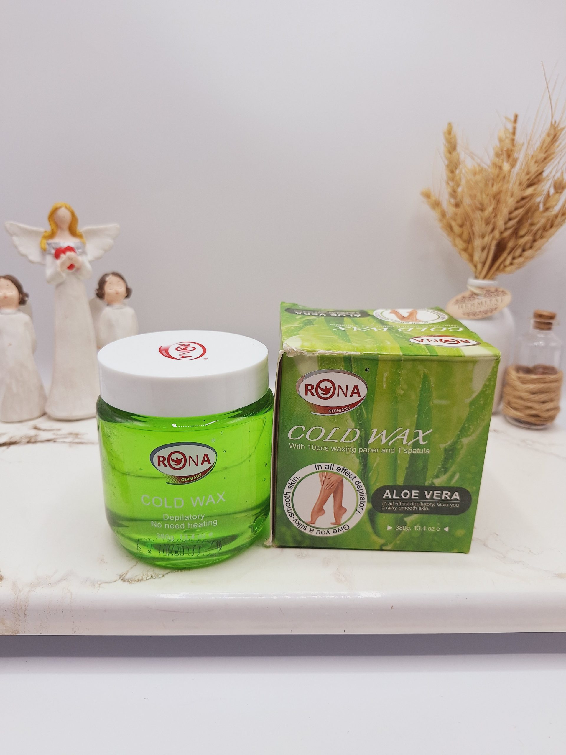 موم سرد با کاغذ اپیلاسیون همراه با کاردک رایحه آلوئه ورا برند RONA کد 3138