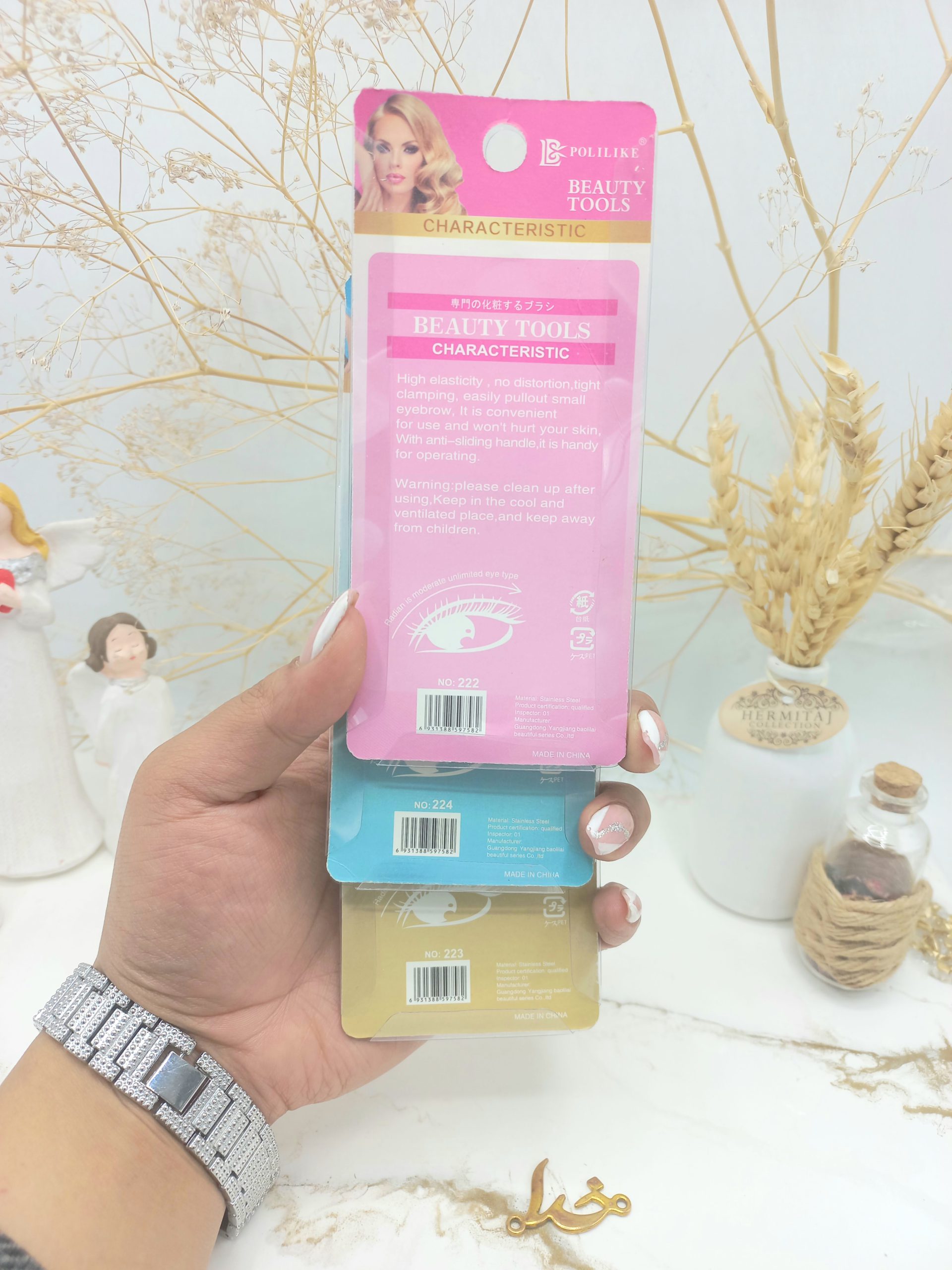 ابروهای زیبا نقش بسیار مهمی در زیبایی چهره خواهد داشت. برای این که بتوانید ابروهای زیبا داشته باشید احتیاج به یک موچین مناسب برای مرتب کردن ابروها دارید. موچین ابرو دکمه دار طرح آبرنگی دارای طراحی بسیار مناسب و لبه تیز برای اصلاح ریزترین موها و بالاتر بردن دقت در نظر گرفته شده است. وقتی که موچین را در جهت رویش موهای ابرو به حرکت درآورید، متوجه عملکرد دقیق و تمیز آن خواهید شد. با کمترین فشار موهای ریز ابرو را میگیرد و از ریشه به بیرون میکشد. تیغههای موچین ابرو دکمه دار طرح آبرنگی از استیل ضدزنگ ساخته شدهاند. این موچین با سری نازک و عملکرد عالی بهراحتی در دست بانوان جا میشود و قابلیت شستوشوی مداوم را دارد. برای شستوشوی پس از هر اصلاح ابرو، میتوانید آن را به مدت 2 دقیقه در محلول الکل غوطهور کنید. با شستوشوی منظم و با دقت تیغههای آن را در برابر کند شدن محافظت میکنید. خرید موچین ابرو دکمه دار طرح آبرنگی با توجه به عملکرد سریع و دقیق، نوک تیز و ضدزنگ، طرح زاویهدار و تا حدودی ارگونومیک و قابلیت شسته شدنش برای شما بسیار رضایتبخش به نظر میرسد. با خرید موچین ابرو دکمه دار طرح آبرنگی از زیباییتان لذت ببرید و ریزترین موها را به راحتی وبدون زخم کردن ابرو بردارید.