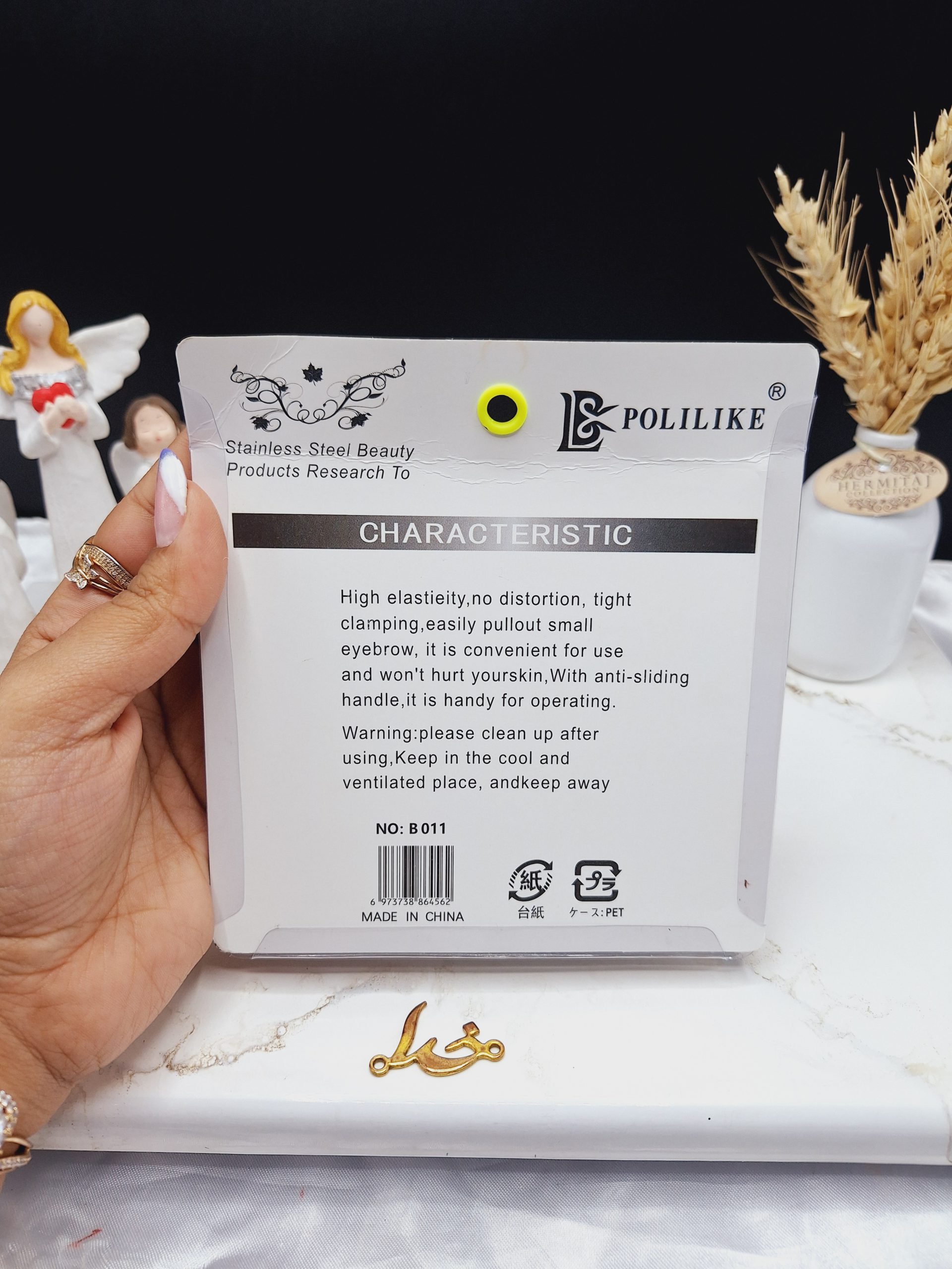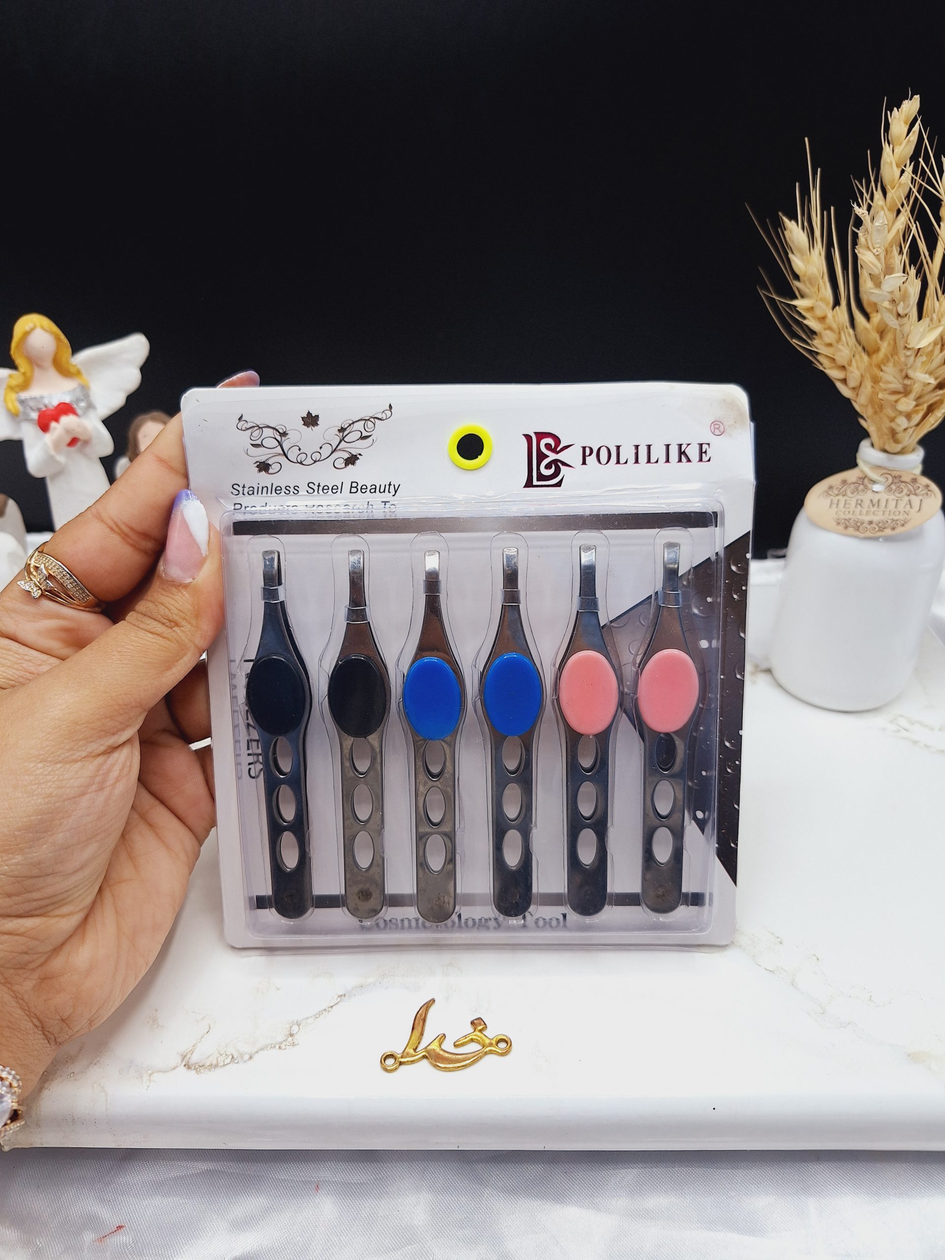 موچین انگشتی دکمه ای استیل کد برند POLILIKE کد B011 ابزاری مخصوص جهت رفع موهای اضافی در نقاط مختلف صورت مخصوصاً در حاشیه ابرو می باشند که
