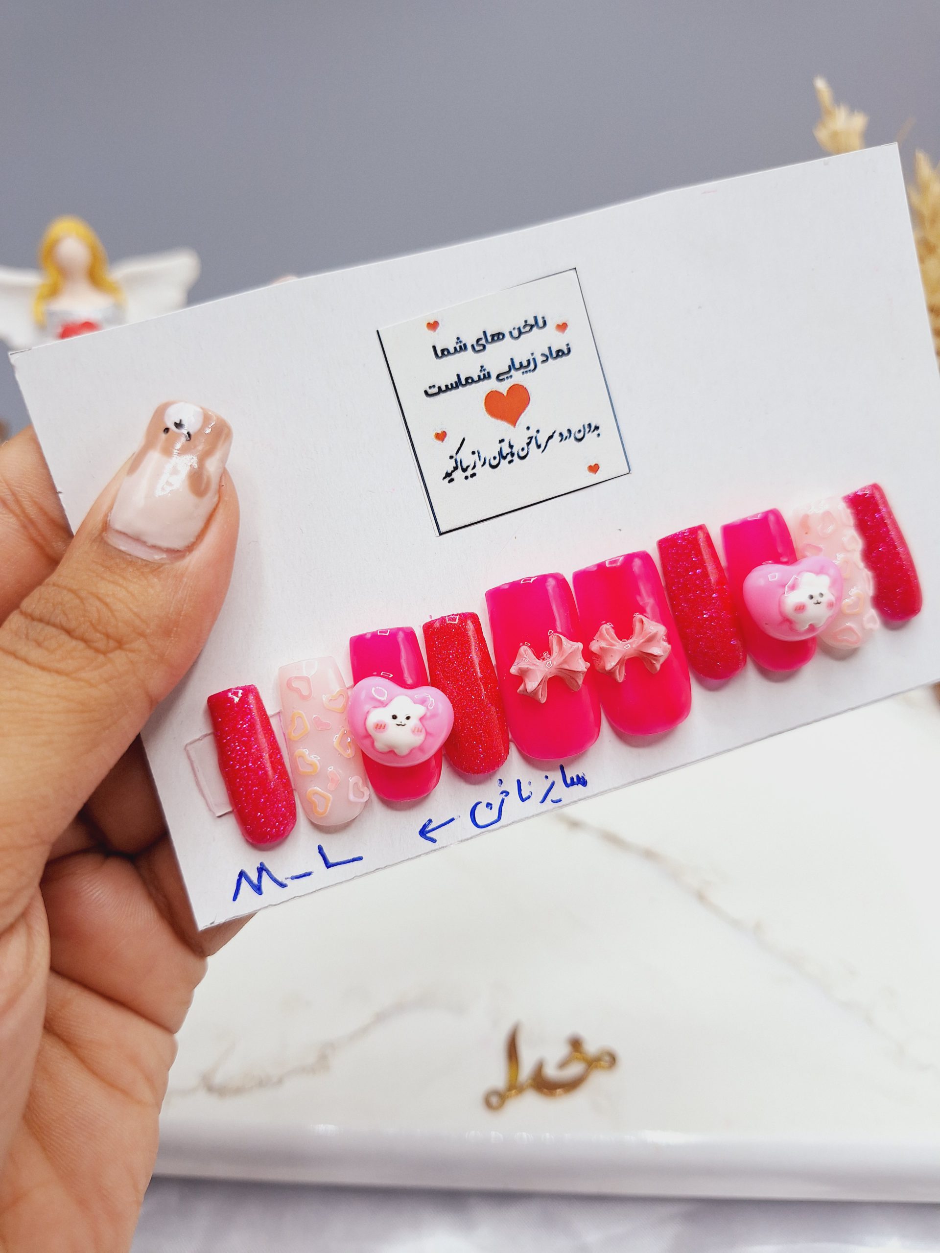 ناخن مصنوعي هاي ما با استفاده از مواد كاشت و متريال ژل آماده شده . قوس مناسب ، حالت طبيعي ، انعطاف داشتن و استقامت بالاي ناخن ها از ويژگي هاي منحصر به فرد محصولات ماست. همه طراحي ها كار دست و هنرِ طراحان ما هست ، به همين خاطر هر طرحي كه مد نظرتون باشه رو به زيبايي اجرا ميكنيم . در صورت استفاده و نگهداري درست از ناخن ها ميتونيد تا مدت ها ازشون استفاده كنيد و از زيباييش روي دستاتون لذت ببريد