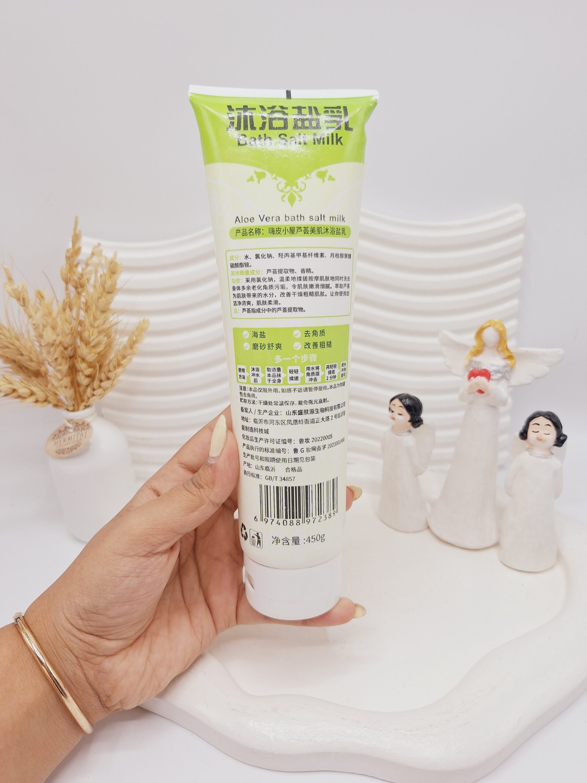 نمک بدن شیر با رایحه آلوئه ورا حجم 450 گرم کد 2389 یک محصول مراقبتی بینظیر برای پوست شماست که با ترکیبی از مواد مغذی و ویتامینها، لطافت و نرمی پوست را افزایش میدهد. این محصول با رایحه آرامشبخش آلوئه ورا، تجربهای خوشبو و دلنشین در حمام برای شما فراهم میکند.