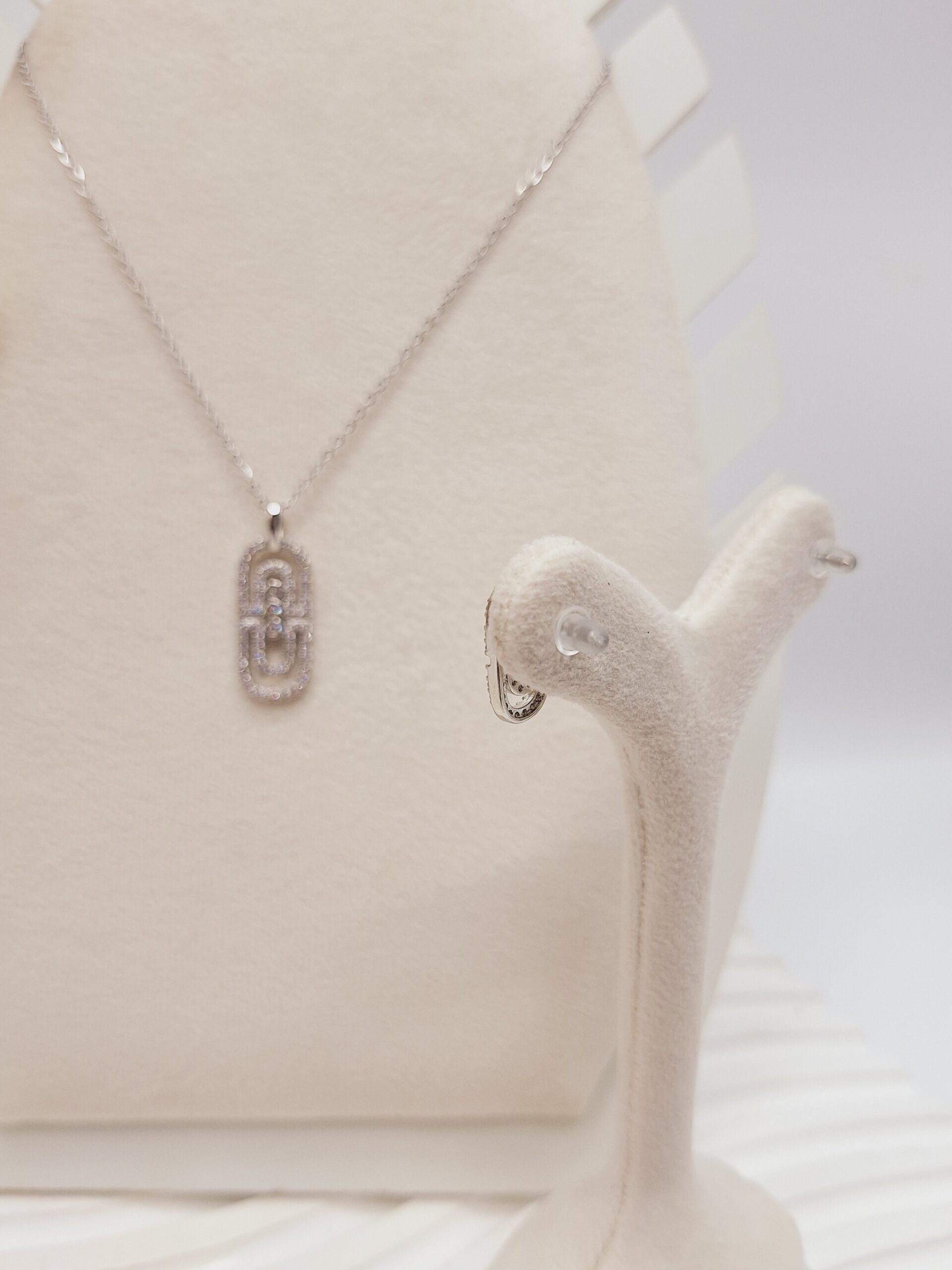 نیم ست نگیندار طرح قفلی نقرهای یک مجموعه اکسسوری شیک و لوکس است 💎✨. طراحی ظریف با نگینهای درخشان، جلوهای جذاب به استایل شما میبخشد و مناسب استفاده در مهمانیها، مجالس و روزمره میباشد 🎉💖.