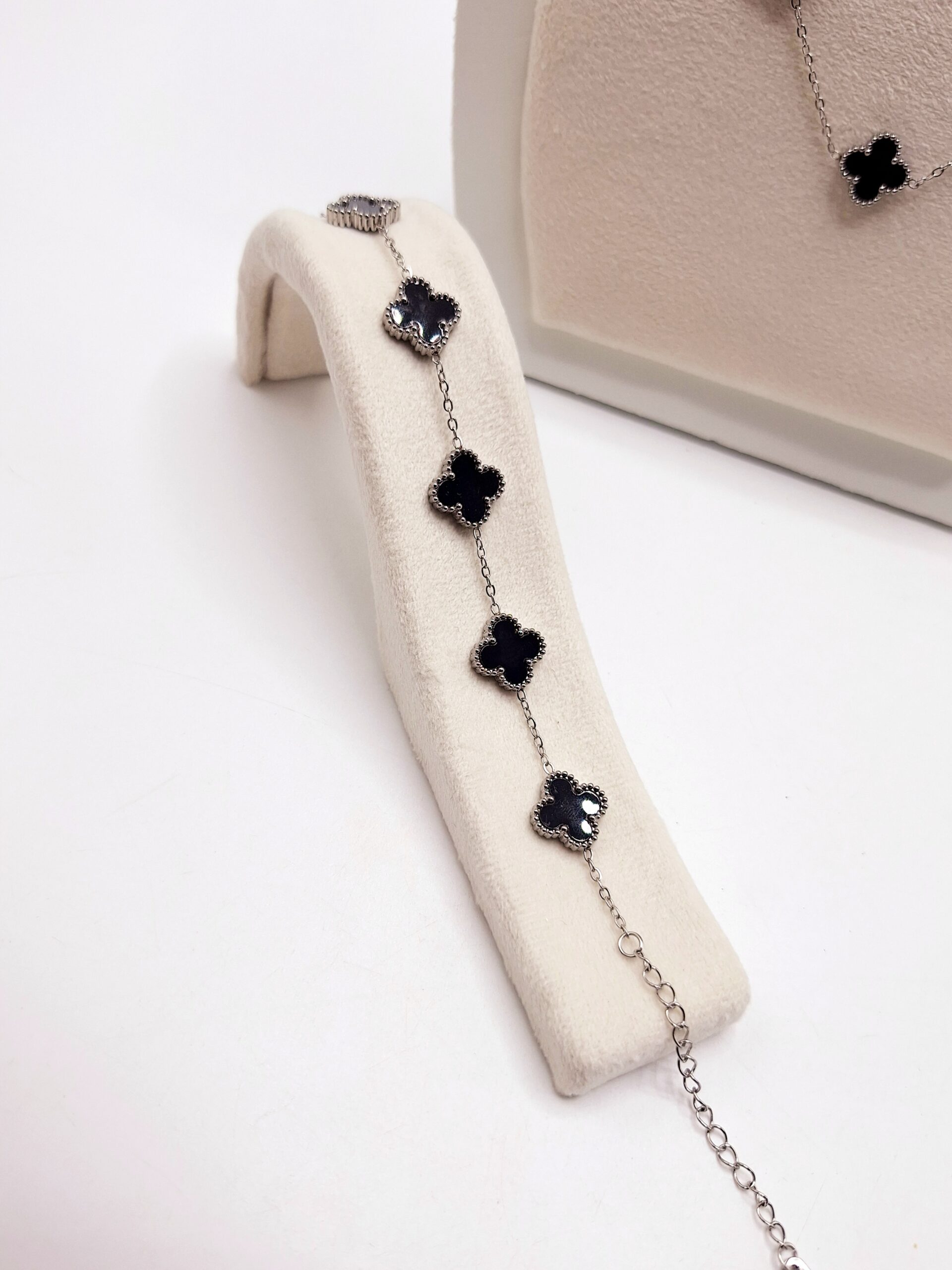 نیم ست کامل ونکلیف رنگ مشکی 🖤✨ یه ست شیک و لاکچری که با طراحی خاصش استایل هر دختری رو خاص‌تر و جذاب‌تر می‌کنه 😍🥺 - 🌟 طراحی: نیم ست کامل (گردنبند + گوشواره + دستبند+ انگشتر) - 🎨 رنگ: مشکی لاکچری با قاب استیل براق - ✨ سبک: ظریف، مدرن و دخترونه - 🎁 مناسب مهمونی و استایل روزمره خاص - ⚠️ نیاز به مراقبت دارد (از تماس با مواد شوینده و مایع ظرفشویی جلوگیری شود)