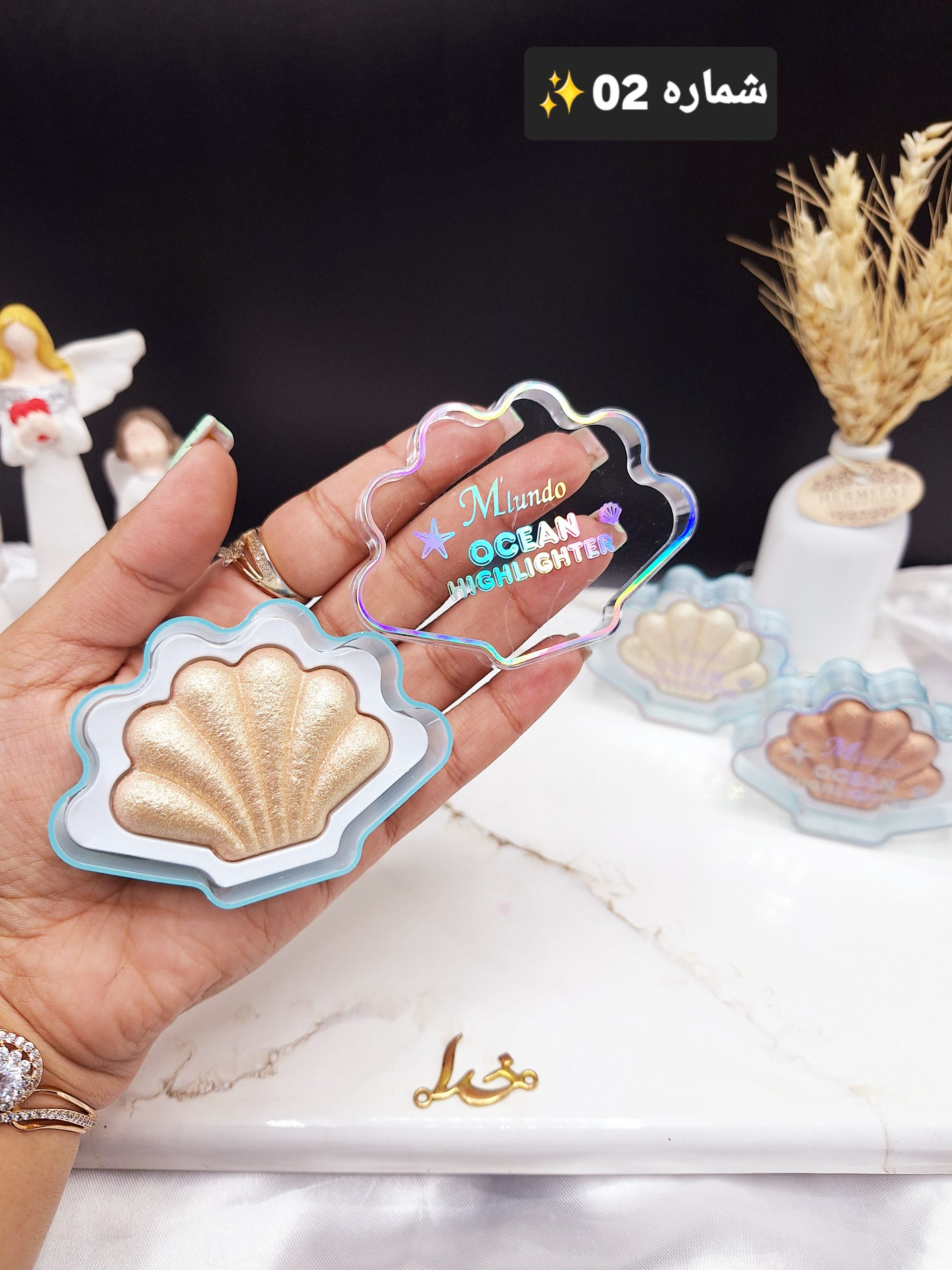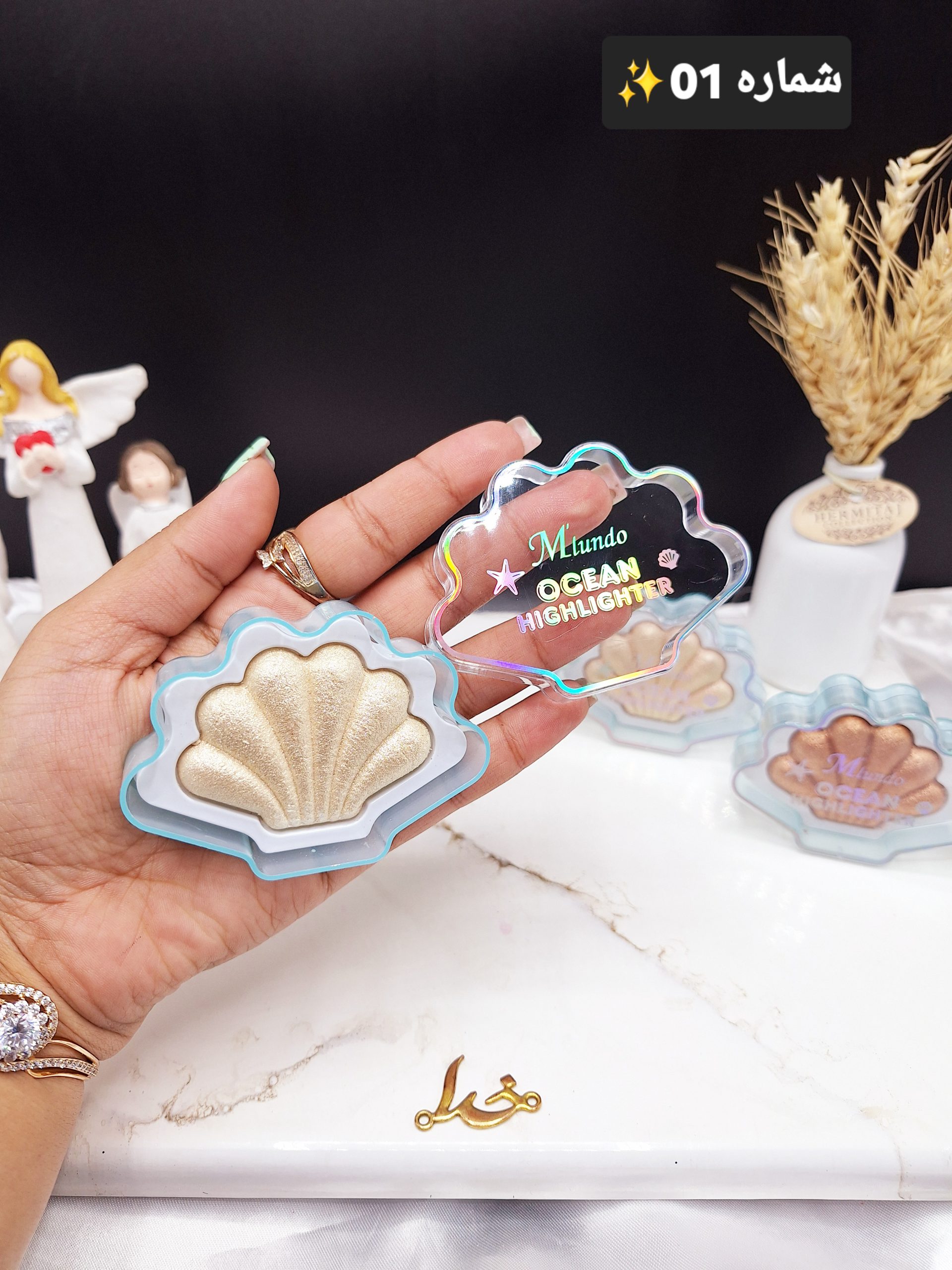 هایلایتر طرح صدف Mundo کد GZ8040159 شاین و به صورت مایع هستند و علاوه بر ایجاد براقیت روی پوست، خاصیت آبرسانی برای پوست نیز دارند. از هایلایتر روی نوک بینی، در قسمت میانی بالای خط لب، روی استخوان گونه، روی استخوان ترقوه و … استفاده می شود.
