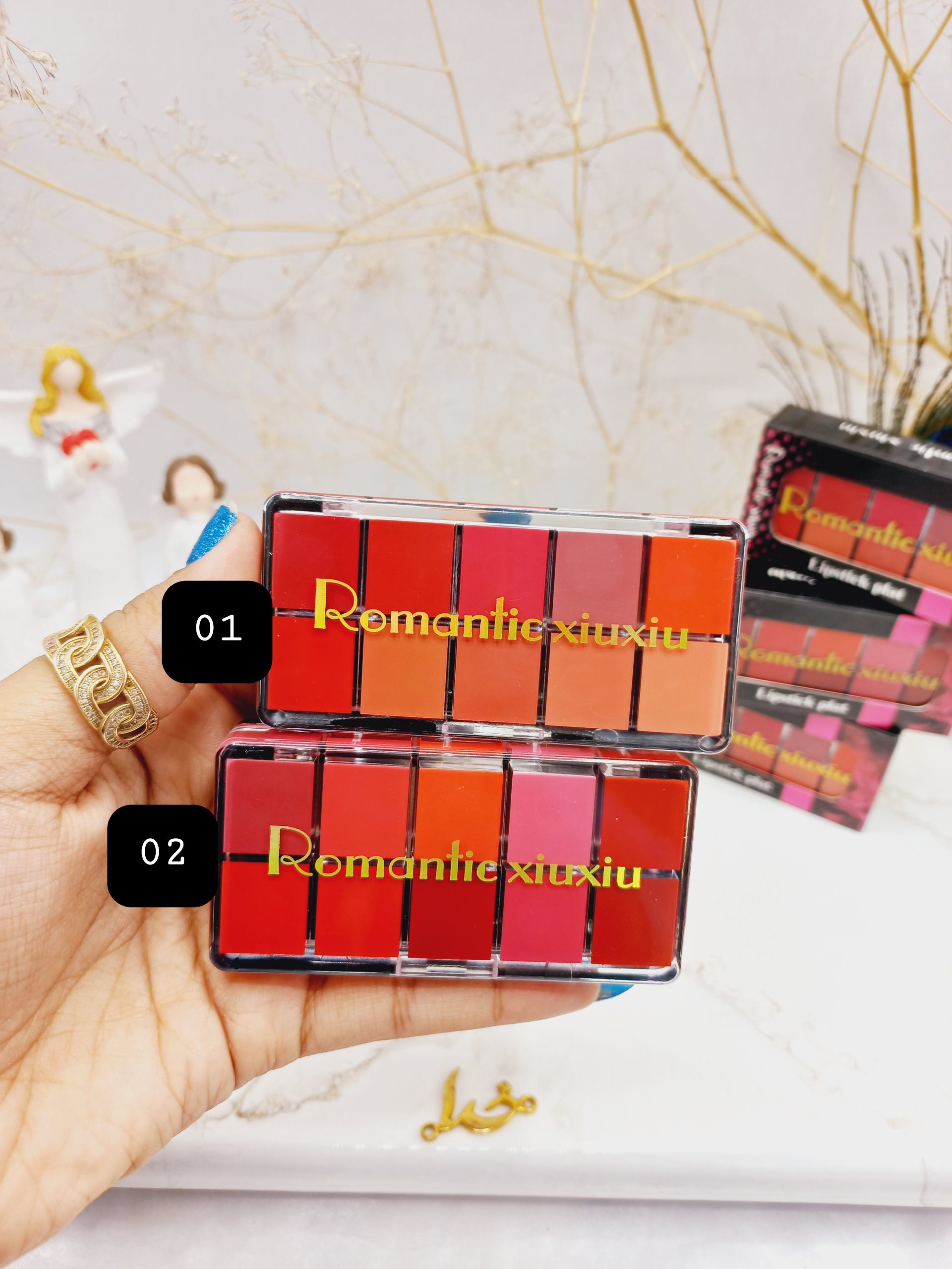 پالت رژ لب 10 تایی ROMANTIC XIUXIU کد 37999 از محصولات پرطرفدار در بین خانم ها می باشد.با توجه به اینکه امروزه خانم ها در همه جا با میکاپ حاضر می شوند،به همین دلیل هر روز مدل های جدیدتر و بهتر لوازم آرایشی تولید می شود.