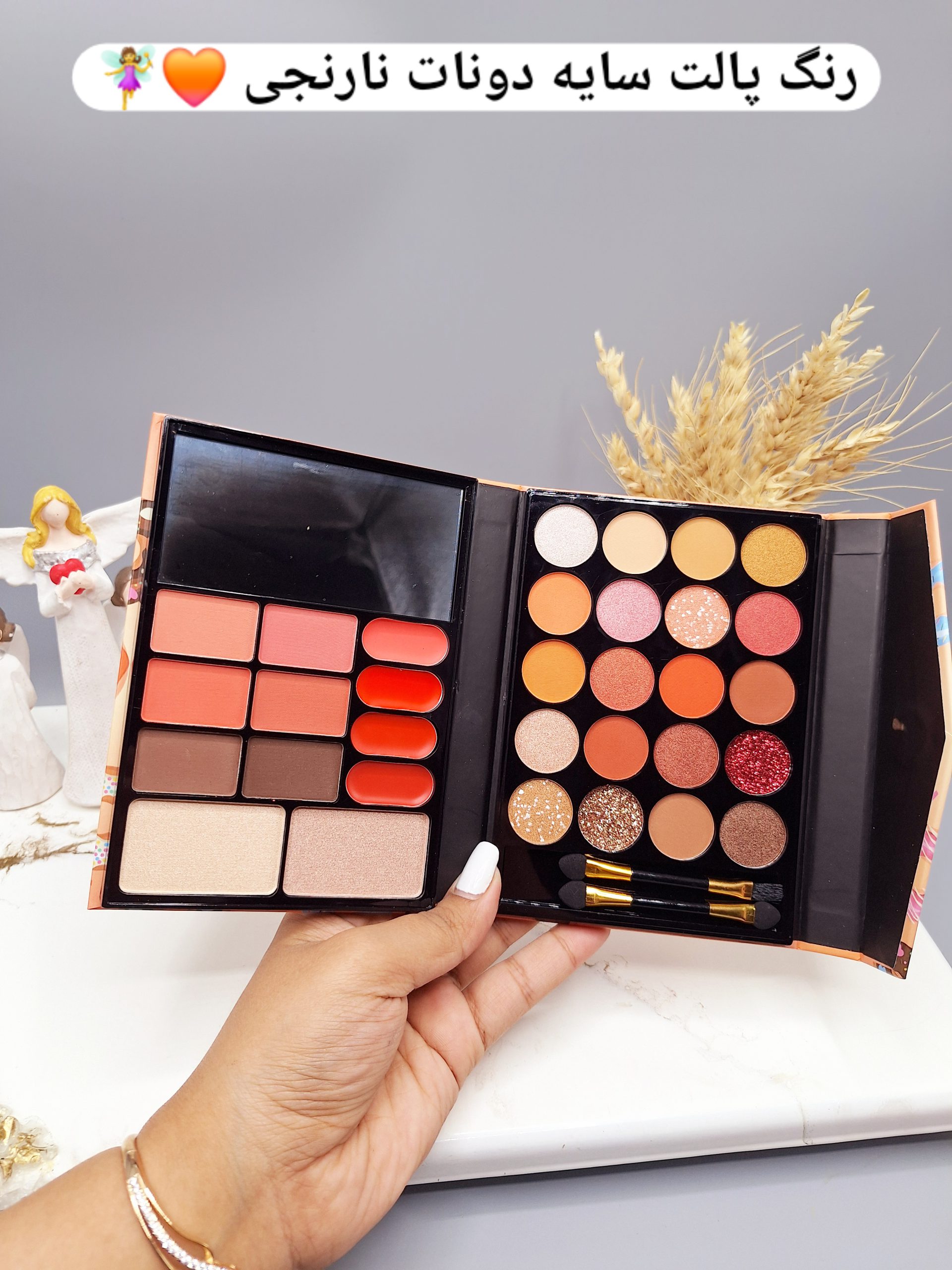 • دارای سایه ، سایه ابرو ، رژلب ، رژگونه ، هایلایتر