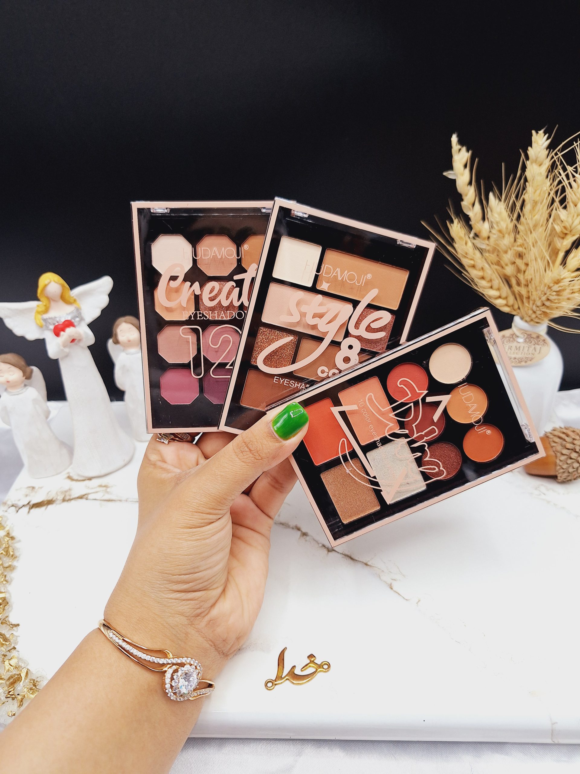 پالت سایه چشم همه کاره HUDAMOJI کد ES-409 در 3 طیف رنگی گرم و سرد تولید شده است.این پالت ها به سایه چشم انگشتی نیز معروف هستند.سایه های انگشتی هدی مجی در پالت های 9رنگ جذاب موجود است .هر پالت شامل سایه چشم شاین و مات ،سایه گلایتری،یک رنگ کانتور و یک رنگ کانسیلر و رژ گونه می باشد.