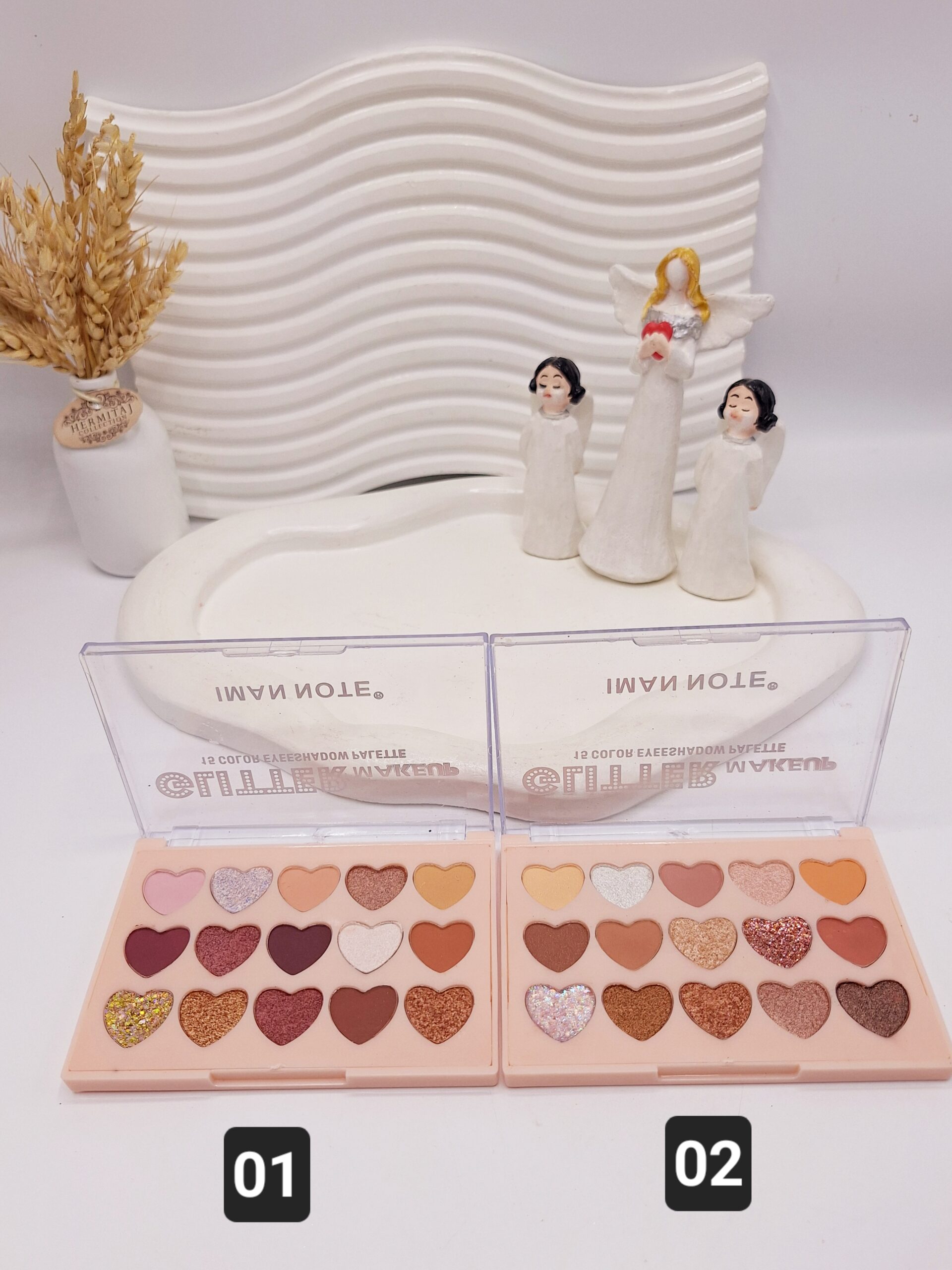 پالت سایه چشم 15 رنگ گلیتری IMAN NOTE طرح قلب کد 7055 یک انتخاب خاص برای دوستداران آرایش چشم درخشان و فانتزی است. این پالت زیبا با طراحی قلبیشکل و ترکیب رنگهای متنوع، جلوهای درخشان و چشمنواز به آرایش شما میبخشد.