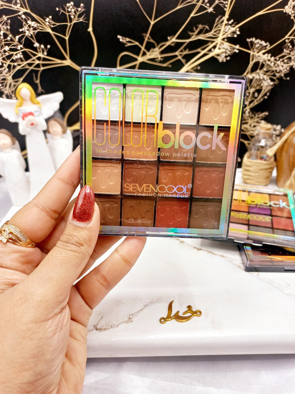 پالت سایه 16رنگ برند سون کول SEVENCOOL کد 6753 بسیار شیک و زیبای سون کول دارای چند رنگ رژ لب بسیار پرکاربرد و پرطرفدار می باشد که پوششی مات و یکدست داشته که می تواند گرما بخش آرایش شما بوده و از سلامت پوست لب شما نیز محافظت نماید. سایه های موجود در این پالت ترکیبی از رنگ های مات و شاین در کنار یک دیگر سایه چشمی زیبا را برای شما بهمراه خواهد داشت. شما می توانید به کمک رژگونه و هایلایتر موجود در این پالت نقاط قوت چهره خود را برجسته ساخته و از جذابیت بیشتر لذت ببرید. ماندگاری و کیفیت محصولات موجود در این پالت بسیار بالا بوده و بافتی سبک و یکدست را بر روی پوست شما ایجاد خواهد نمود.