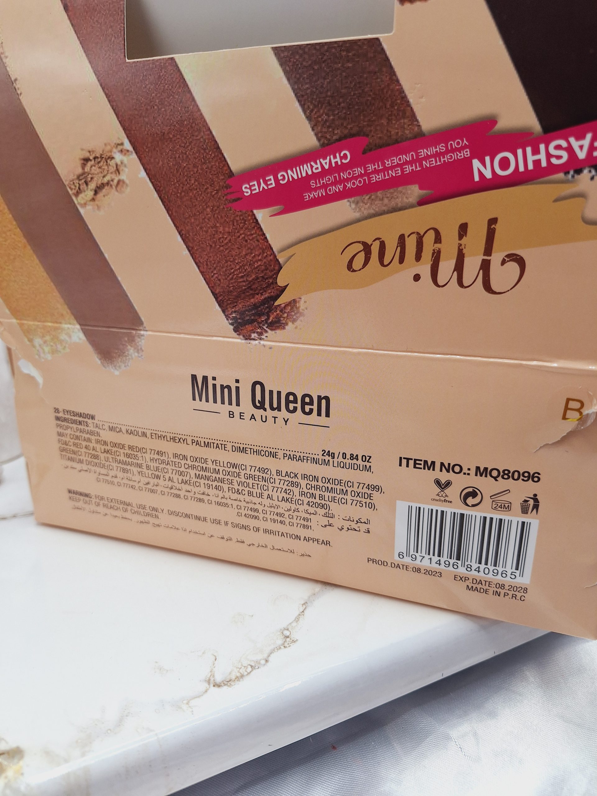 پالت سایه 28 رنگ برند مینی کوئین Mini Queen کد MQ 8096 یک مجموعه از سایه های چشم با رنگ های متنوع است که توسط برند مینی کویین عرضه شده است. این پالت شامل 28 رنگ مختلف است که از رنگ های نئوترال تا رنگ های جریانی و درخشان پوشیده شده است.