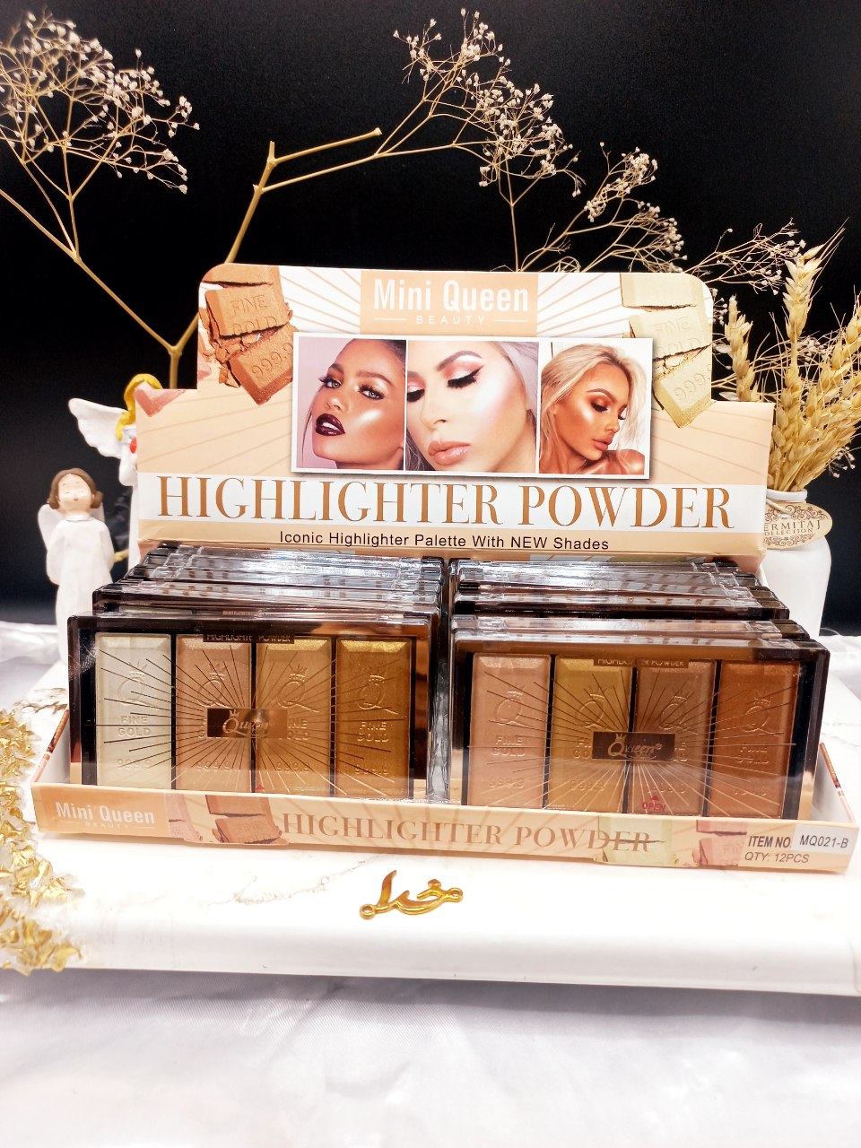 هایلایتر از انواع لوازم آرایش صورت است که برای براق و برجسته کردن نقاط خاصی از صورت مورد استفاده قرار می گیرد. هایلایتر می تواند شادابی خاصی به چهره ببخشد و پوست را صاف و درخشان نماید. هایلایتر ها در انواع مختلف پودری، مایع و استیکی در بازار موجود هستند که نوع پودری برای آرایش های روزانه کاربرد بیشتری دارد. در ادامه به بررسی هایلایتر مینی کویین می پردازیم.