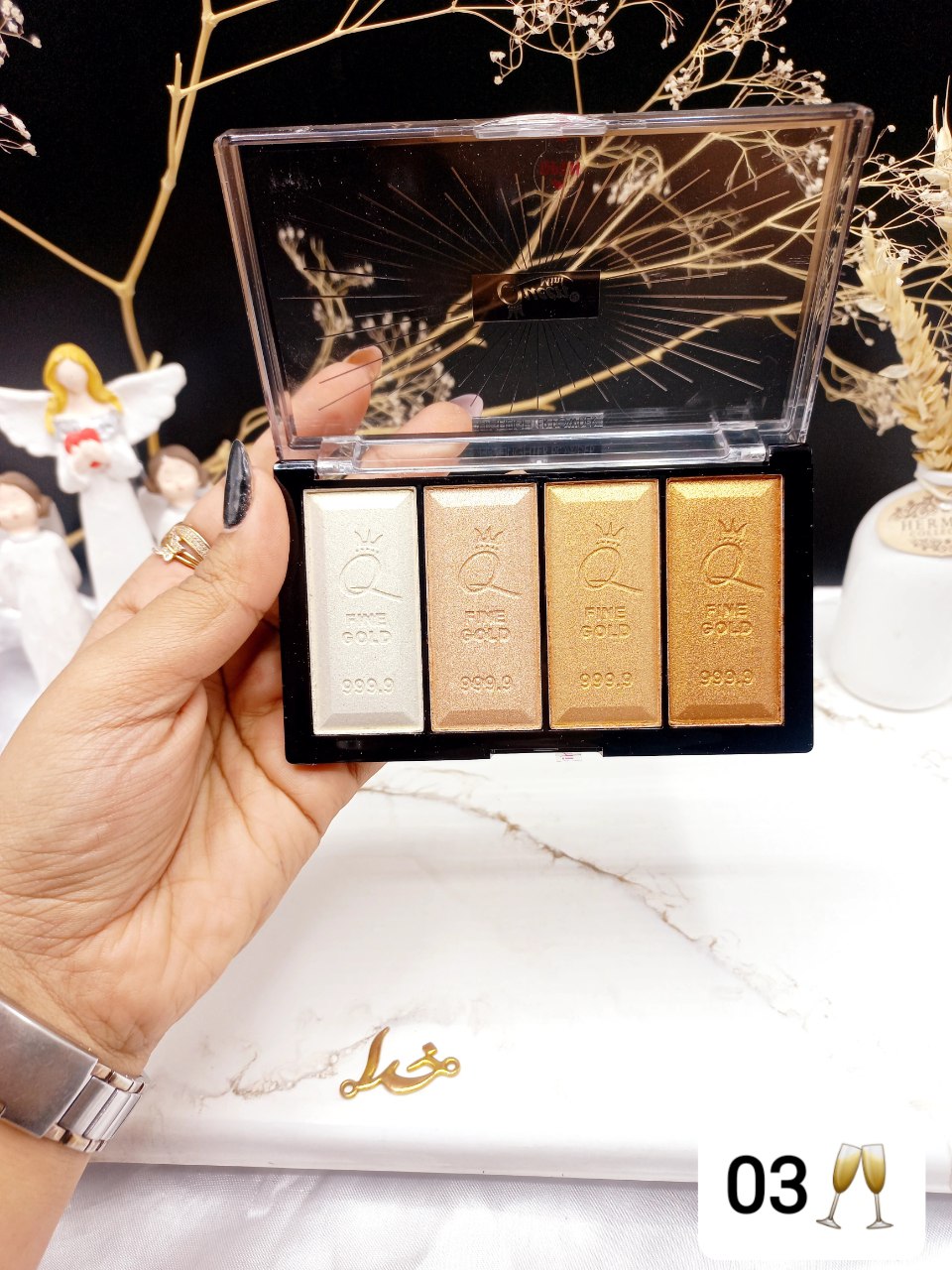 پالت هایلایتر پودری 4 رنگ Mini Queen کد MQ021_B دارای 4 رنگ کاربردی در یک پالت و طرح شمش طلا است که به راحتی روی پوست کشیده می شود. این هایلایتر صورت فوق العاده براق بوده و حاوی رنگدانه های صدفی و فرمولاسیون منعکس کننده نور است که درخششی خیره کننده به چهره می دهد. شما می توانید از هایلایتر مینی کویین برای برجسته تر کردن نواحی کمان ابرو، استخوان گونه، گوشه چشم، و تیغه بینی و هر ناحیه ی دیگر استفاده کنید.