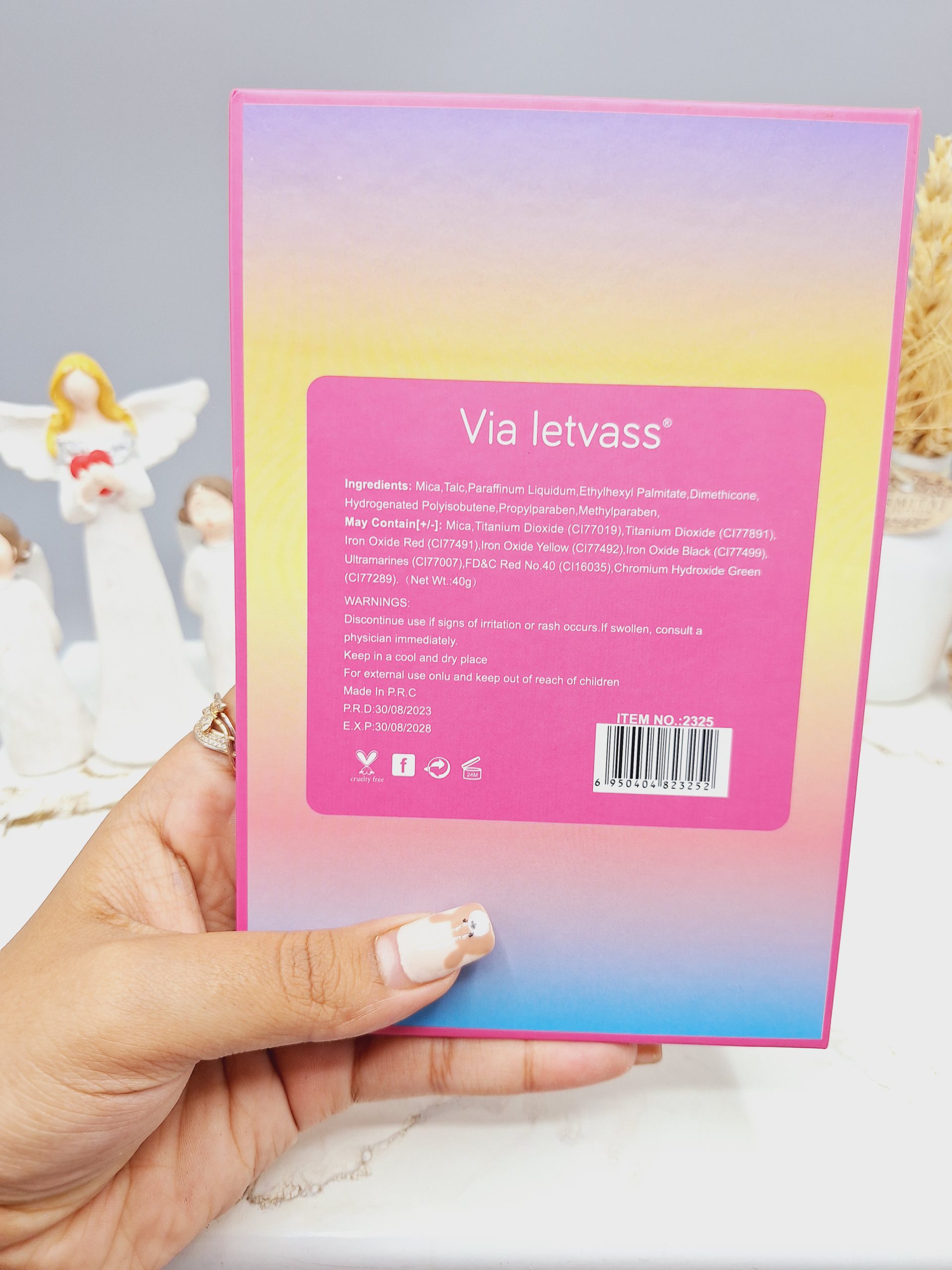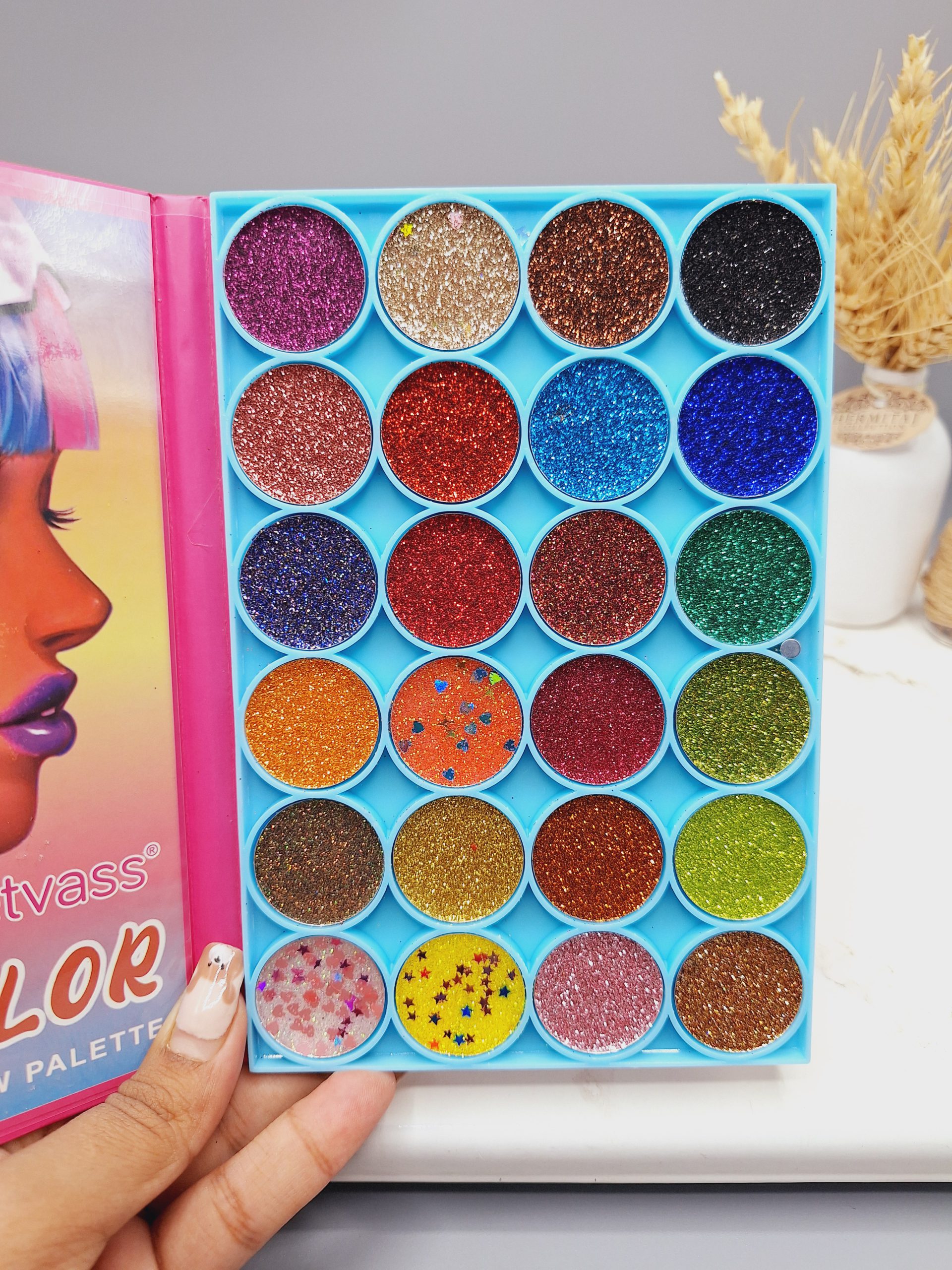 این پالت دارای ۱۲ رنگ خاص و خیره کننده با جلوه گلیتری یا شاین دار است که به راحتی پشت پلک پخش و فید می شود