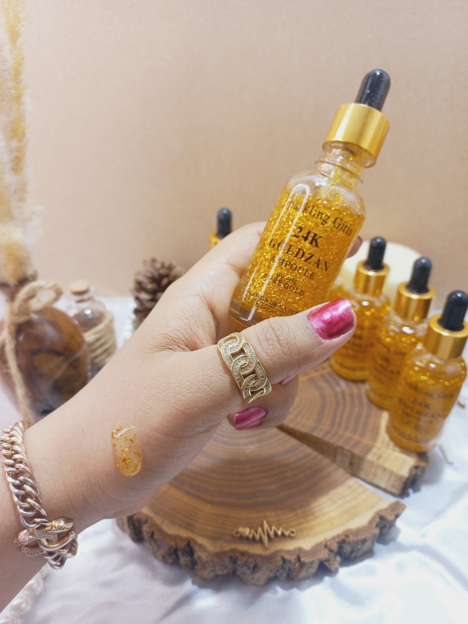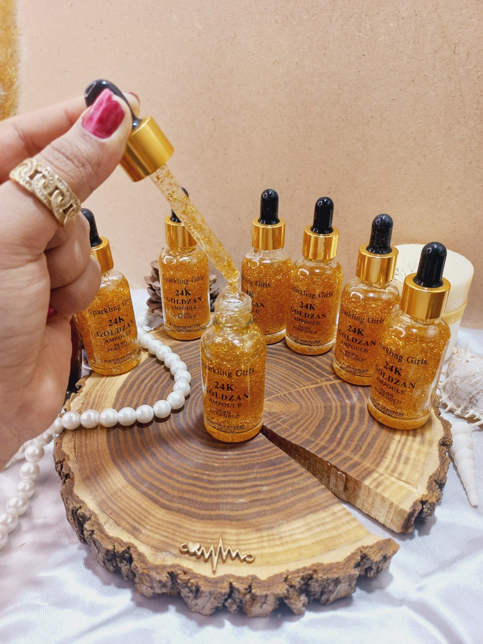 سرم طلا یک محصول کره ای است که دارای ذرات طلایی رنگ می باشد.از این سرم به عنوان پرایمر نیز استفاده می شود.ذرات طلایی موجود در سرم موقع استفاده بر روی پوست با ماساژ دادن به ذرات بسیار ریز شاین تبدیل می شود که حالت شاداب و درخشانی به پوست شما می دهد.