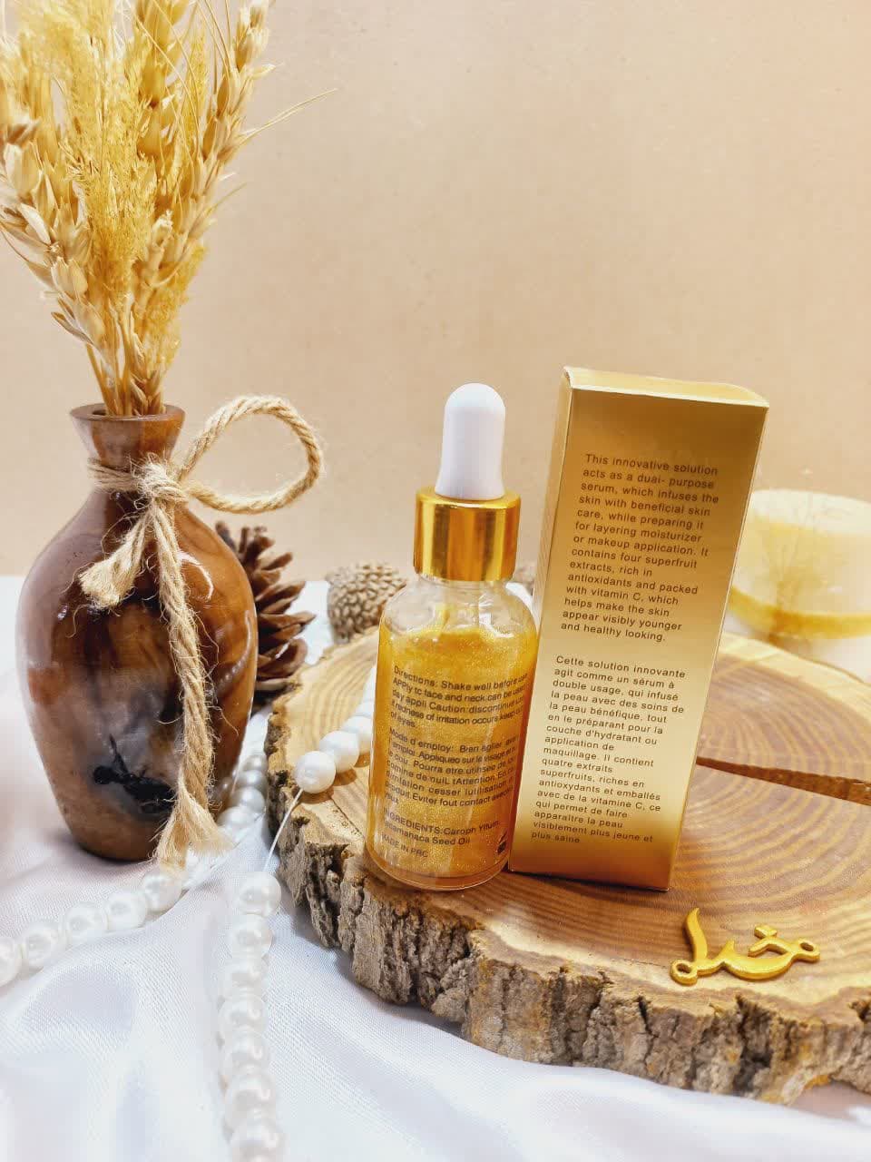 سرم فارسالی طلایی، دارای 4 نوع ویتامین برای تقویت و ترمیم پوست های آسیب دیده است. فرمولاسیون خاص پرایمر و سرم صورت فارسالی طلایی farsali مدل 24K GOLD ELIXIR، برای زیرسازی آرایش استفاده شده و سبب ماندگاری میکاپ می شود.