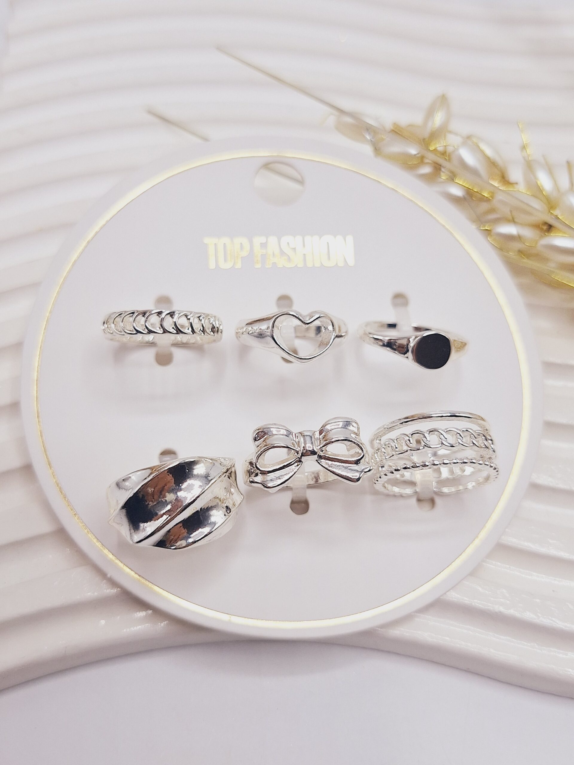 این پک شامل چند انگشتر زیبا با طرح شماره دریایی هست که با آبکاری رادیوم، جلوهای درخشان و لوکس پیدا کرده 💎✨. رنگ نقرهای براق این مجموعه باعث میشه به راحتی با انواع لباسها و اکسسوریها ست بشه. مناسب استفاده روزانه، مهمانی و حتی هدیه دادن 🎁💖