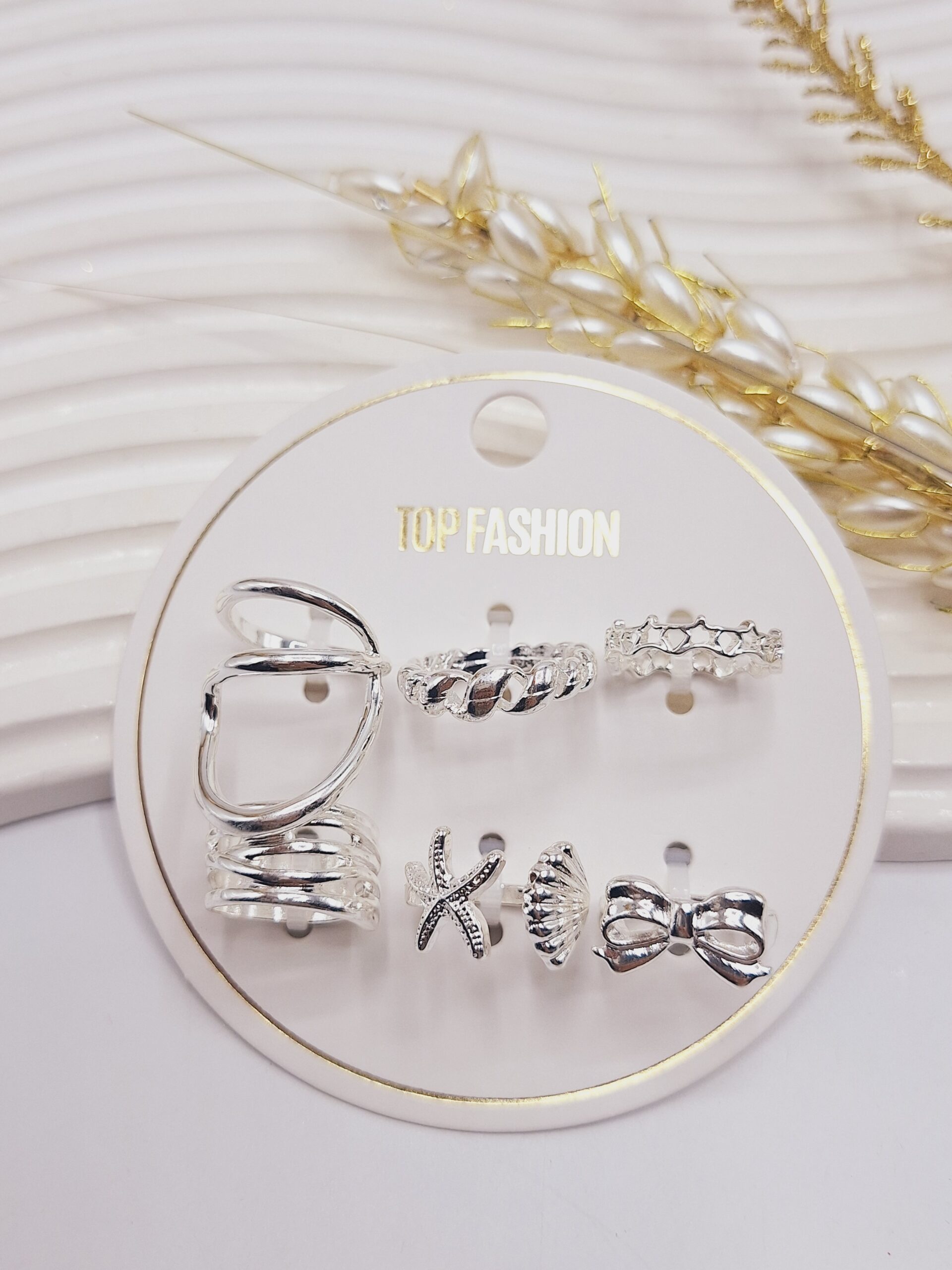 این پک شامل چند انگشتر زیبا با طرح شماره ۵ هست که با آبکاری رادیوم، جلوهای درخشان و لوکس پیدا کرده 💎✨. رنگ نقرهای براق این مجموعه باعث میشه به راحتی با انواع لباسها و اکسسوریها ست بشه. مناسب استفاده روزانه، مهمانی و حتی هدیه دادن 🎁💖