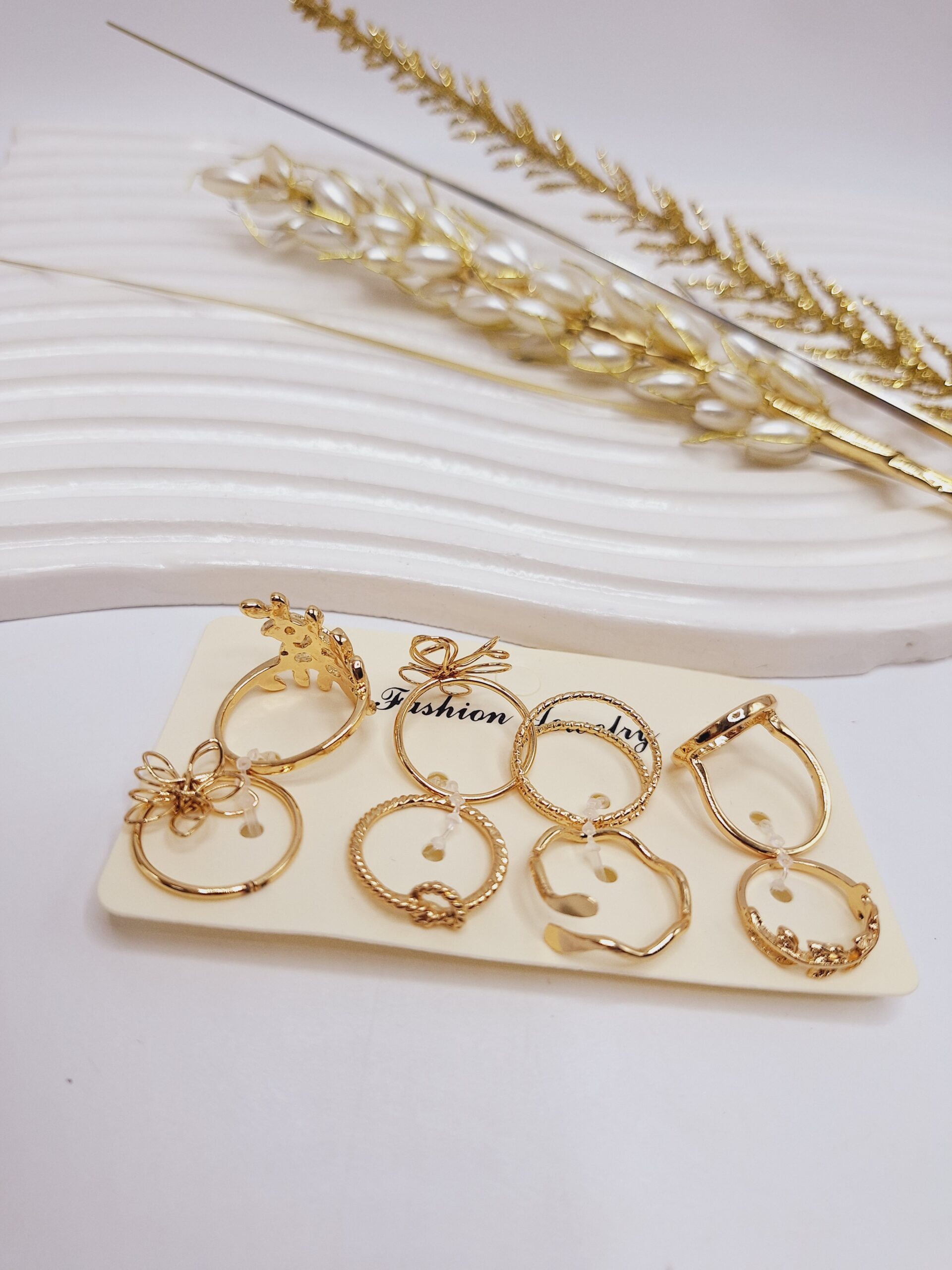 این پک شامل انگشترهای متنوع با طراحی‌های متفاوت است که با آبکاری رادیوم، دوام و کیفیت بالایی دارد و مناسب استفاده روزانه و مجالس می‌باشد ✨